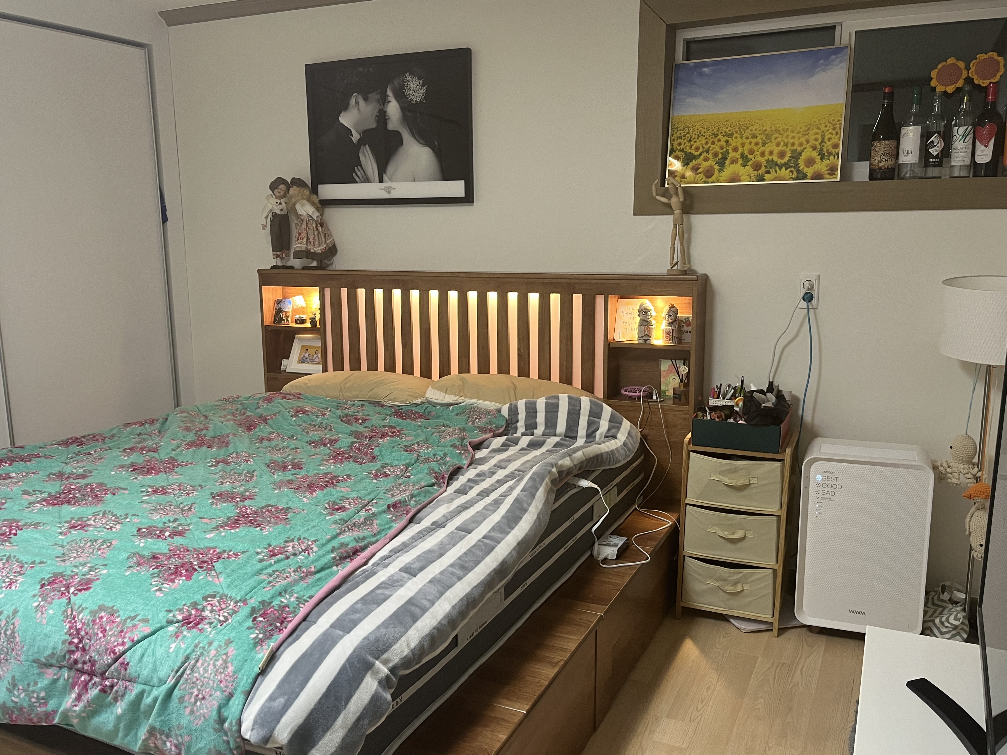 7년만에 침대를 바꿨어요. 원목가구로 깔끔한 걸로 선요했어요~