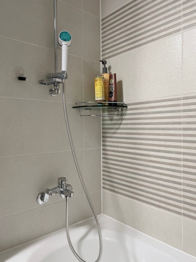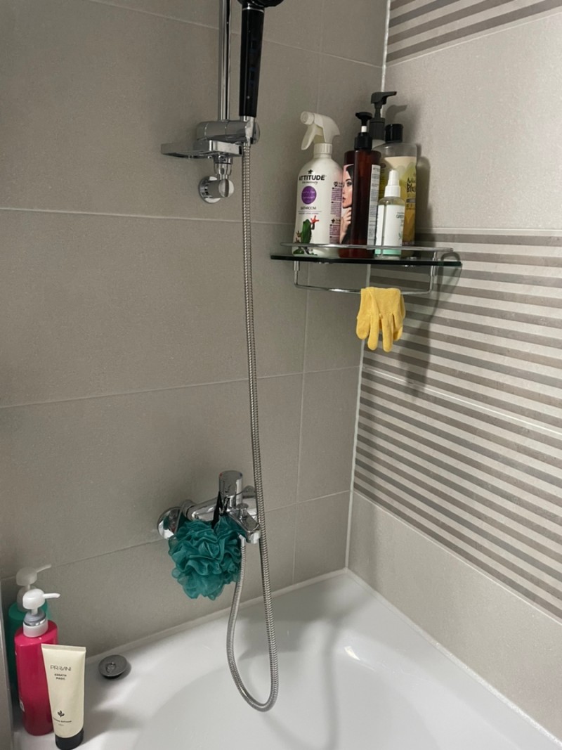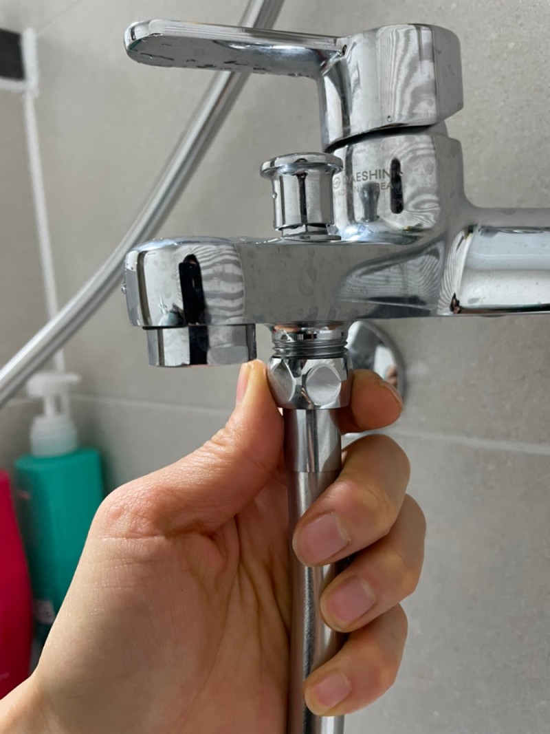 일반적으로 많이 사용하시는 코브라형 샤워줄은 물때가 잘끼고 욕조에 스크래치를 내요. 저는 물때가 너무너무 싫어서 샤워호스를 교체해서 사용해요.