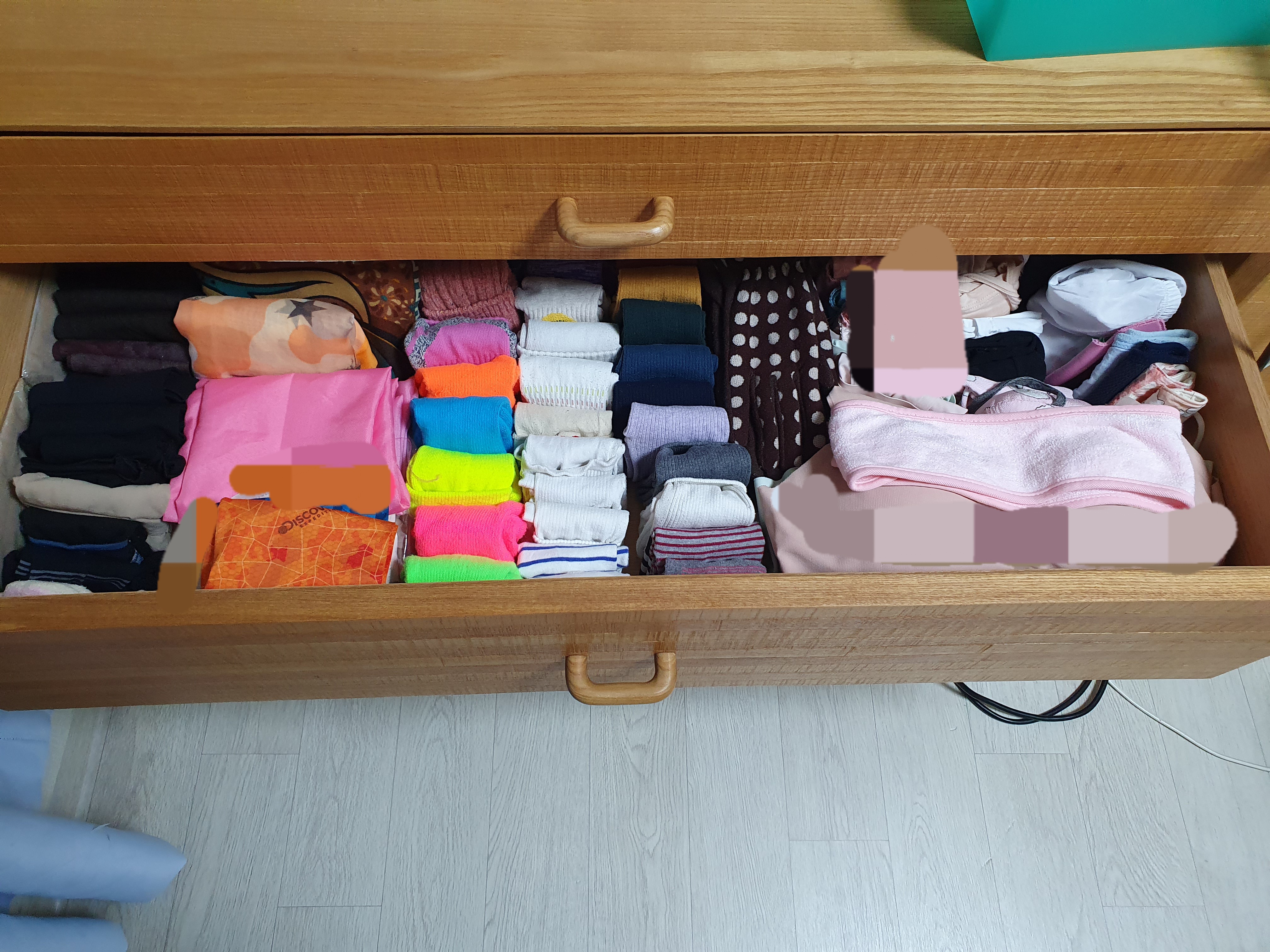 정리 전_ 일주일 전쯤 유튜브 보며 양말 접다 지쳐서 다시 몽땅 서랍 속에 던져 놓은 상태입니다.