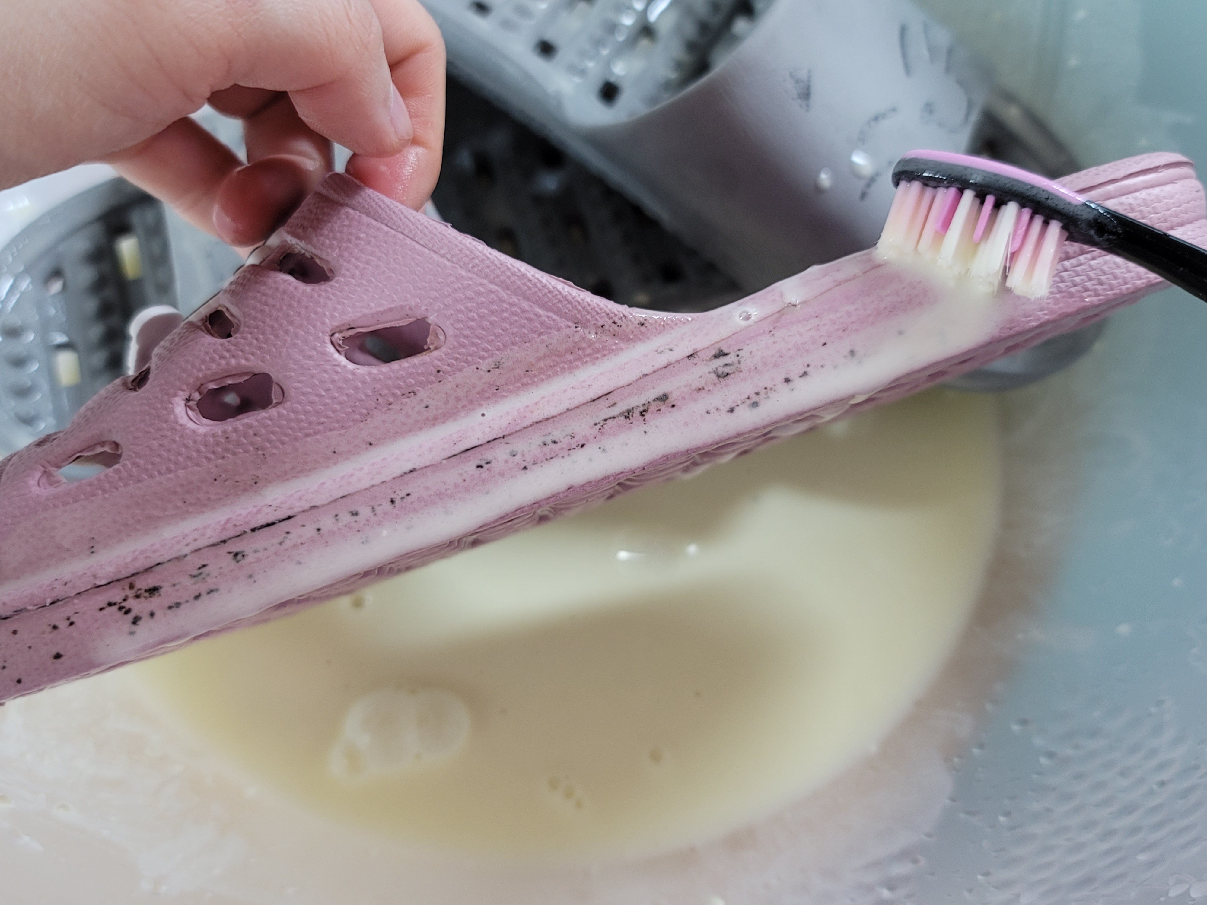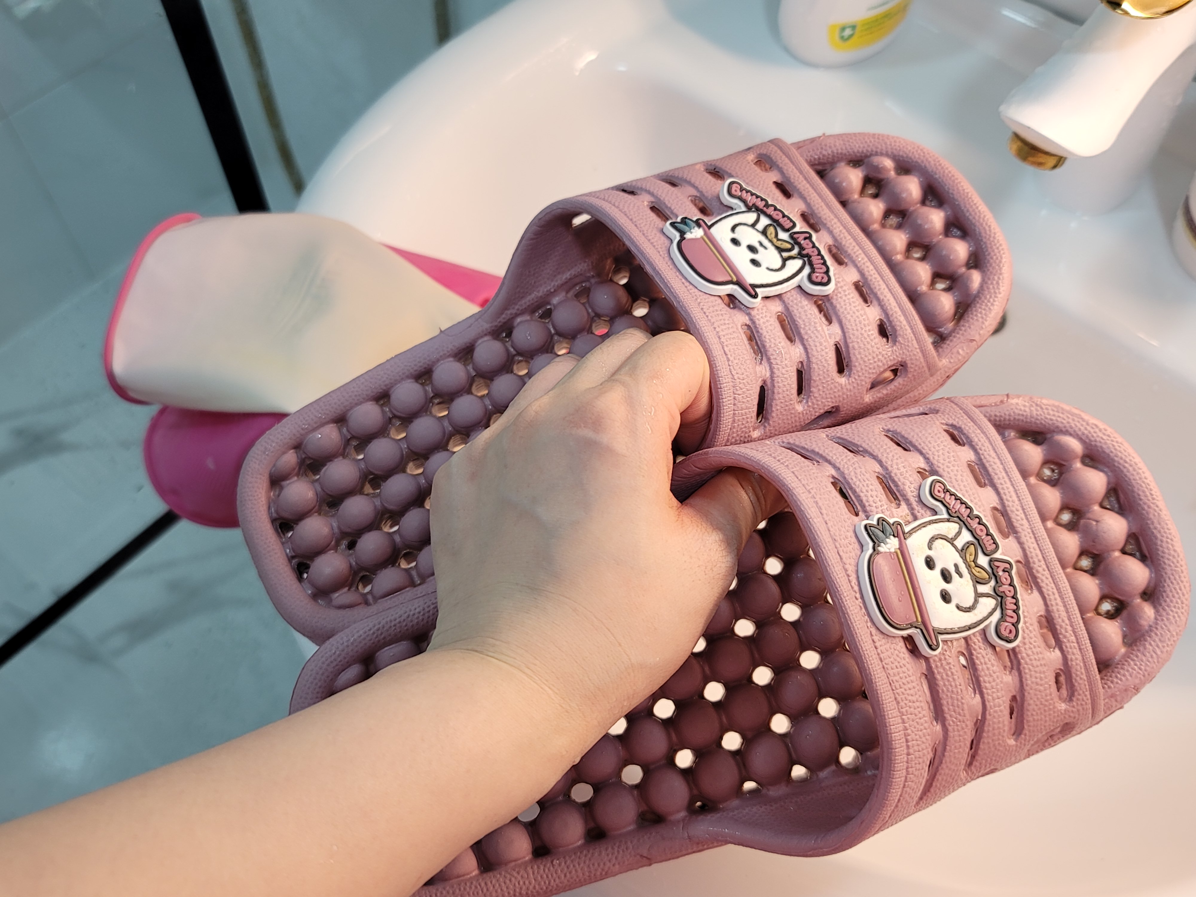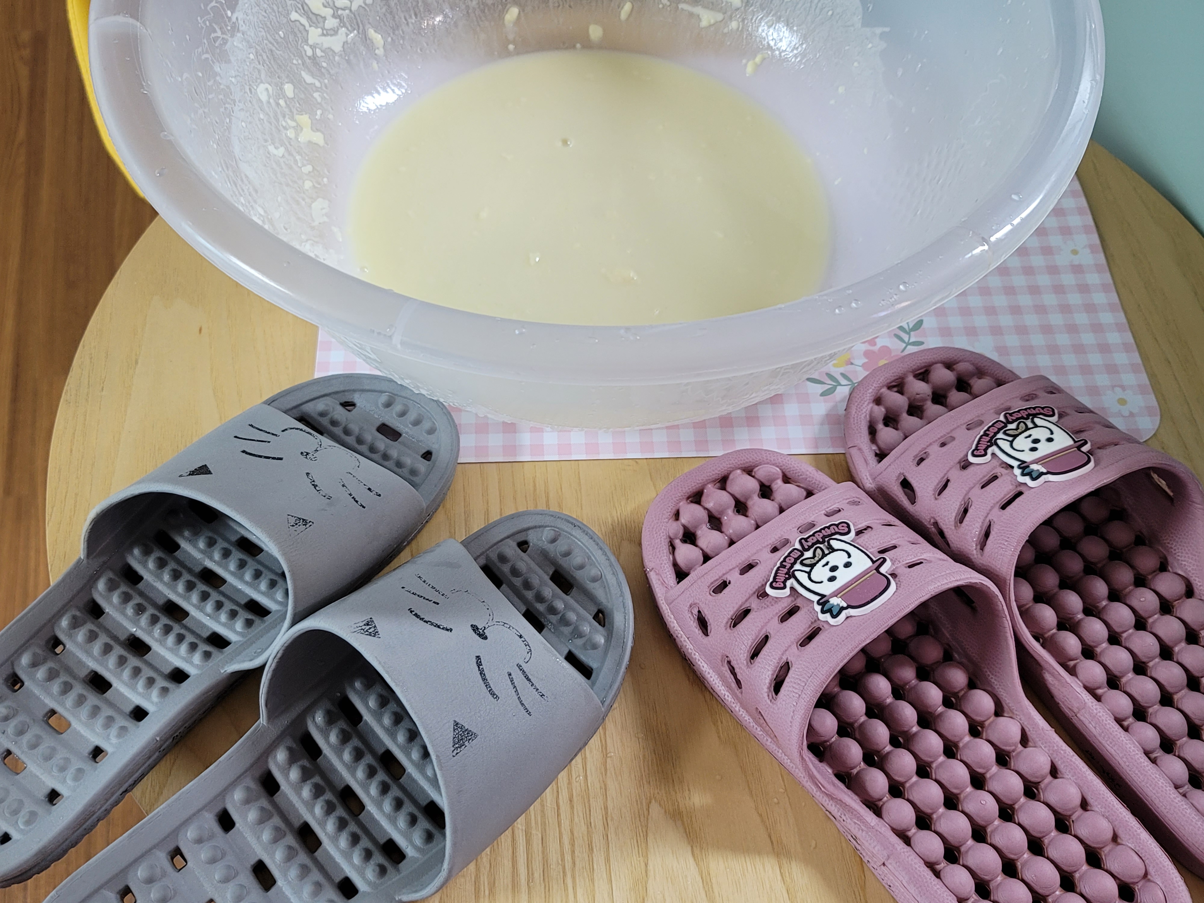 슬리퍼가 재탄생했네요. 밀가루만으로 이렇게 깨끗해지다니 놀라워요. 기름끼 많은 팬 닦을때 밀가루가 유용한 것은 알았지만 이건 몰랐네요. 좋은 정보 공유 감사드려요.