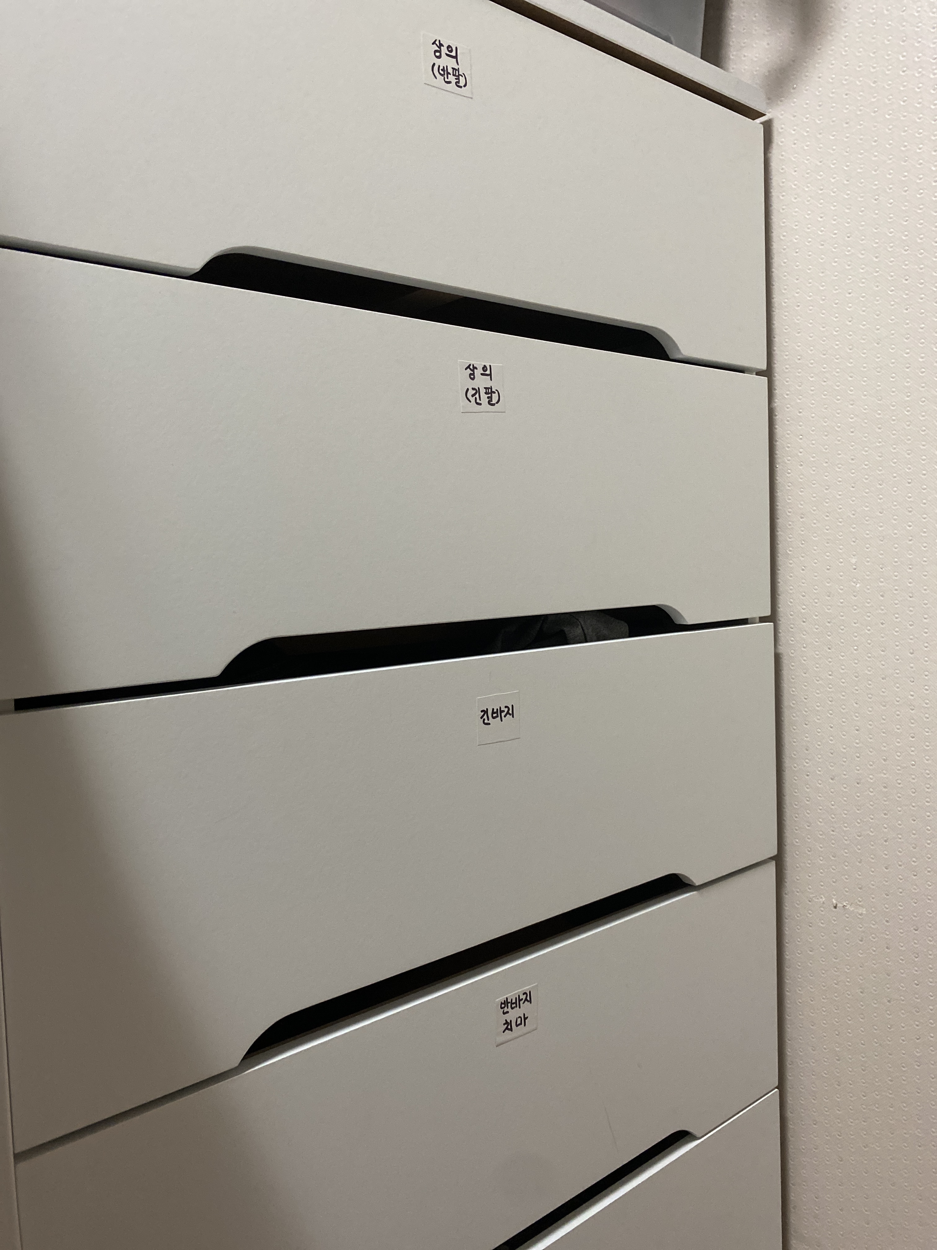 한눈에 정리한 옷이 잘 보일 수 있크록 시트지를 이용해서 옷장에 붙여보았어요