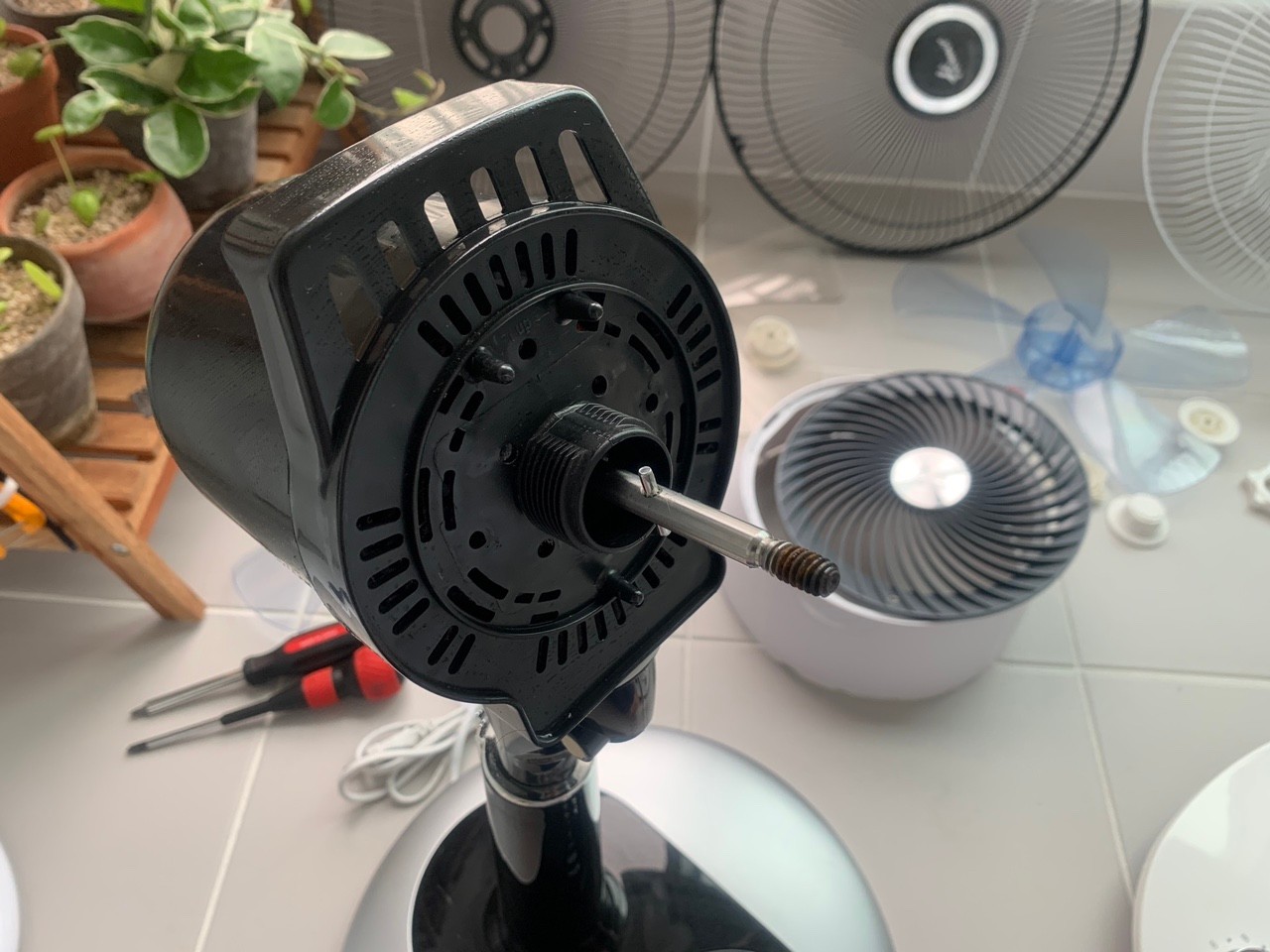 선풍기망 씌운 후 창고로 고고