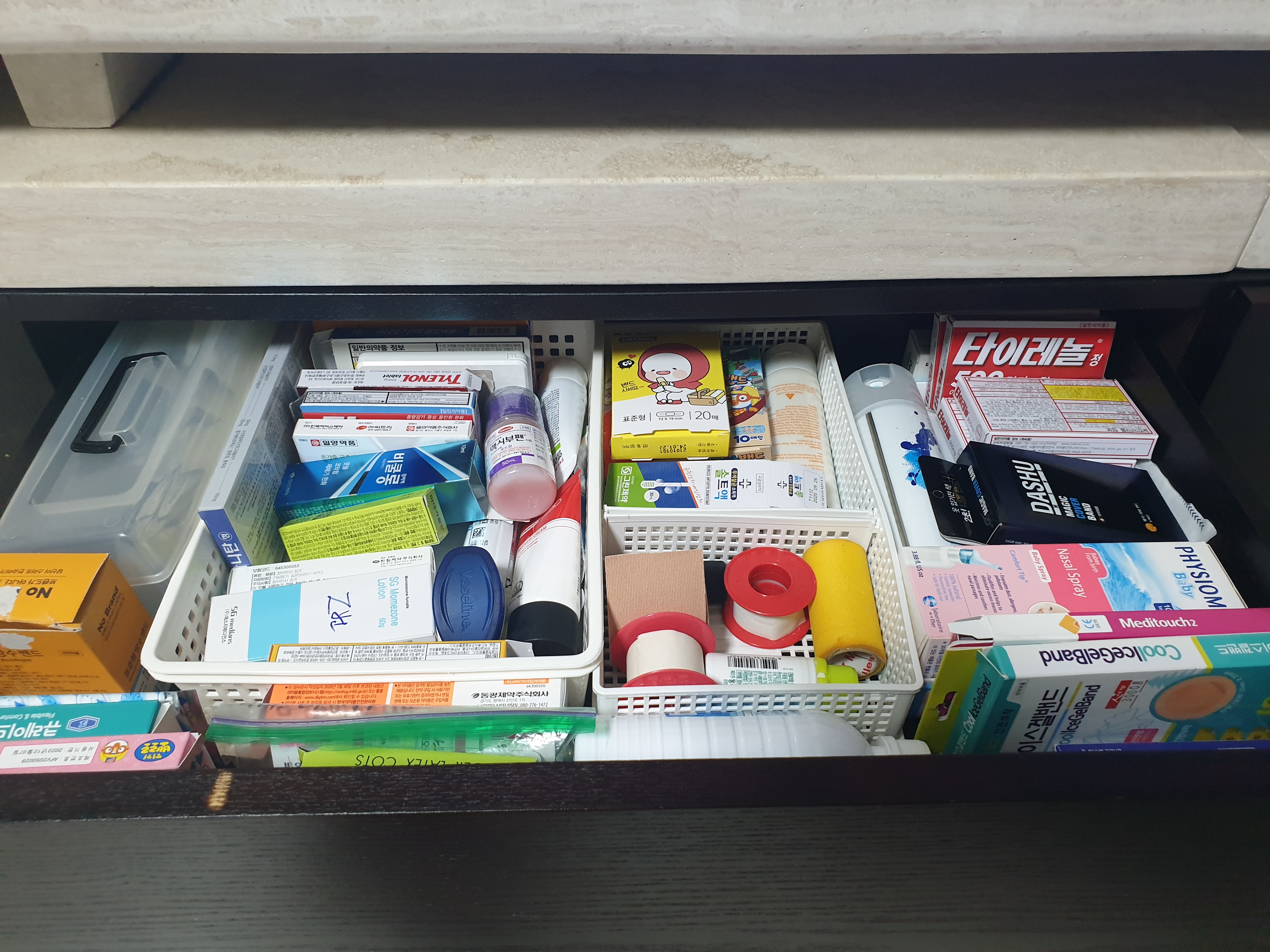 서랍에 약 유통기한 확인하고 약정리 쫙했어요~