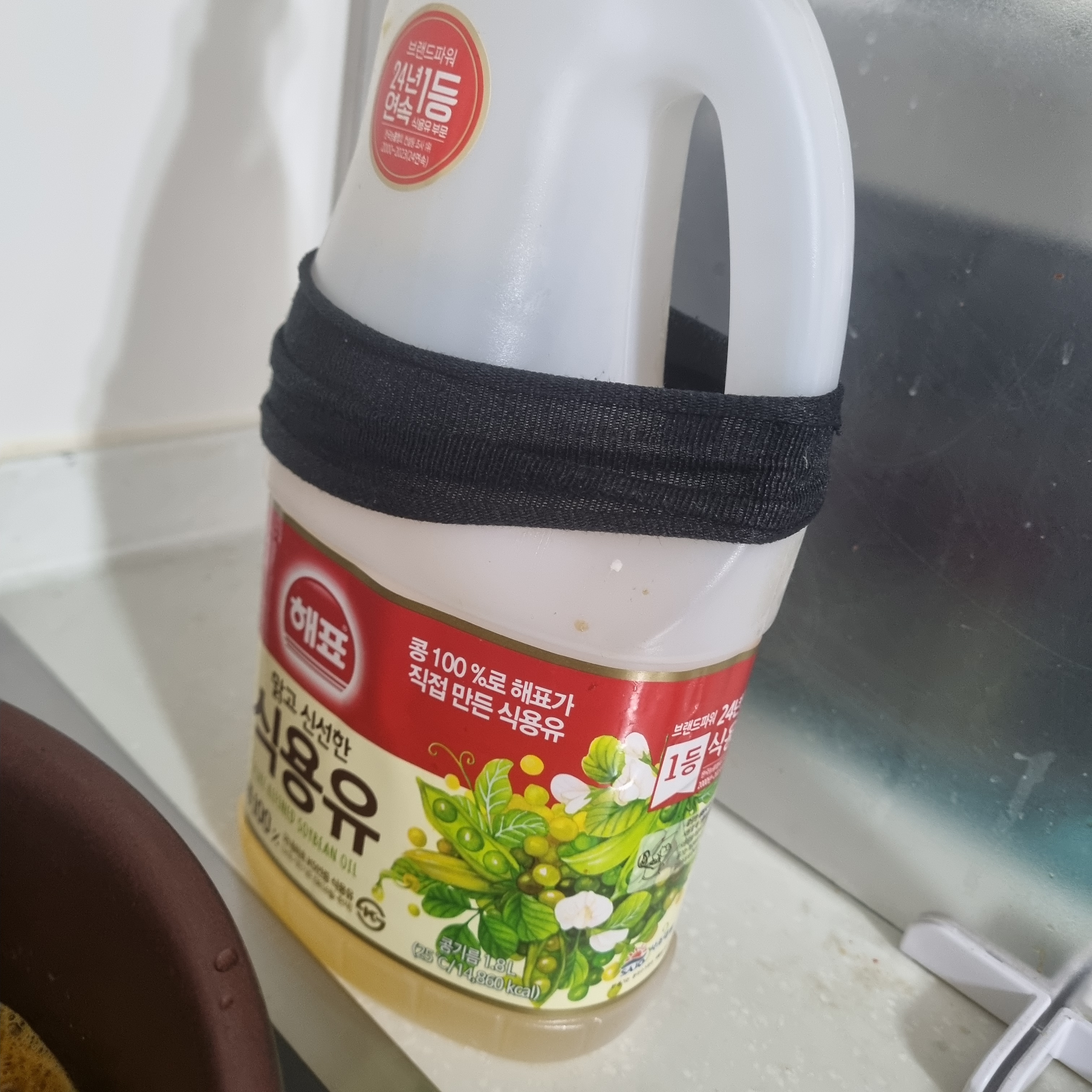 헌 양말로 기름병 위에 씌우기