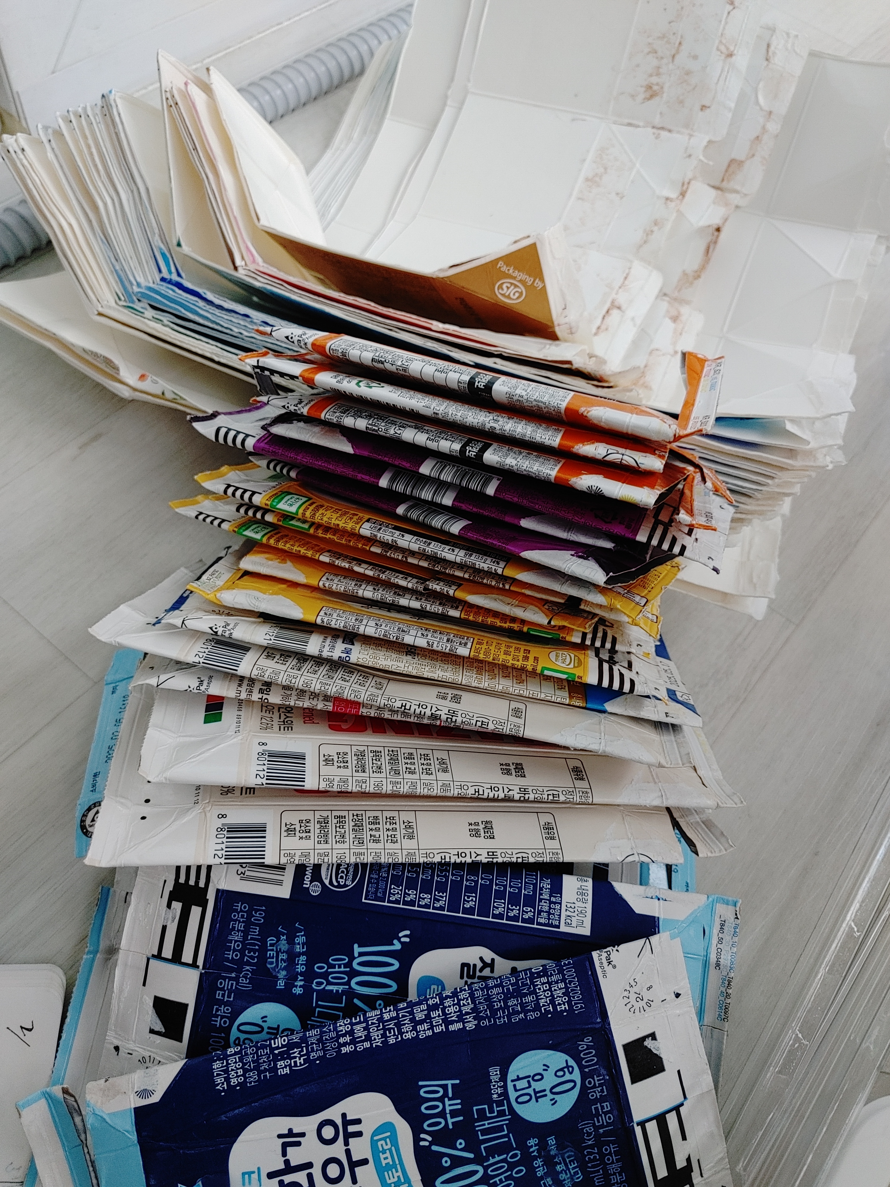 우유팩20개 멸균팩30개 모았네요~