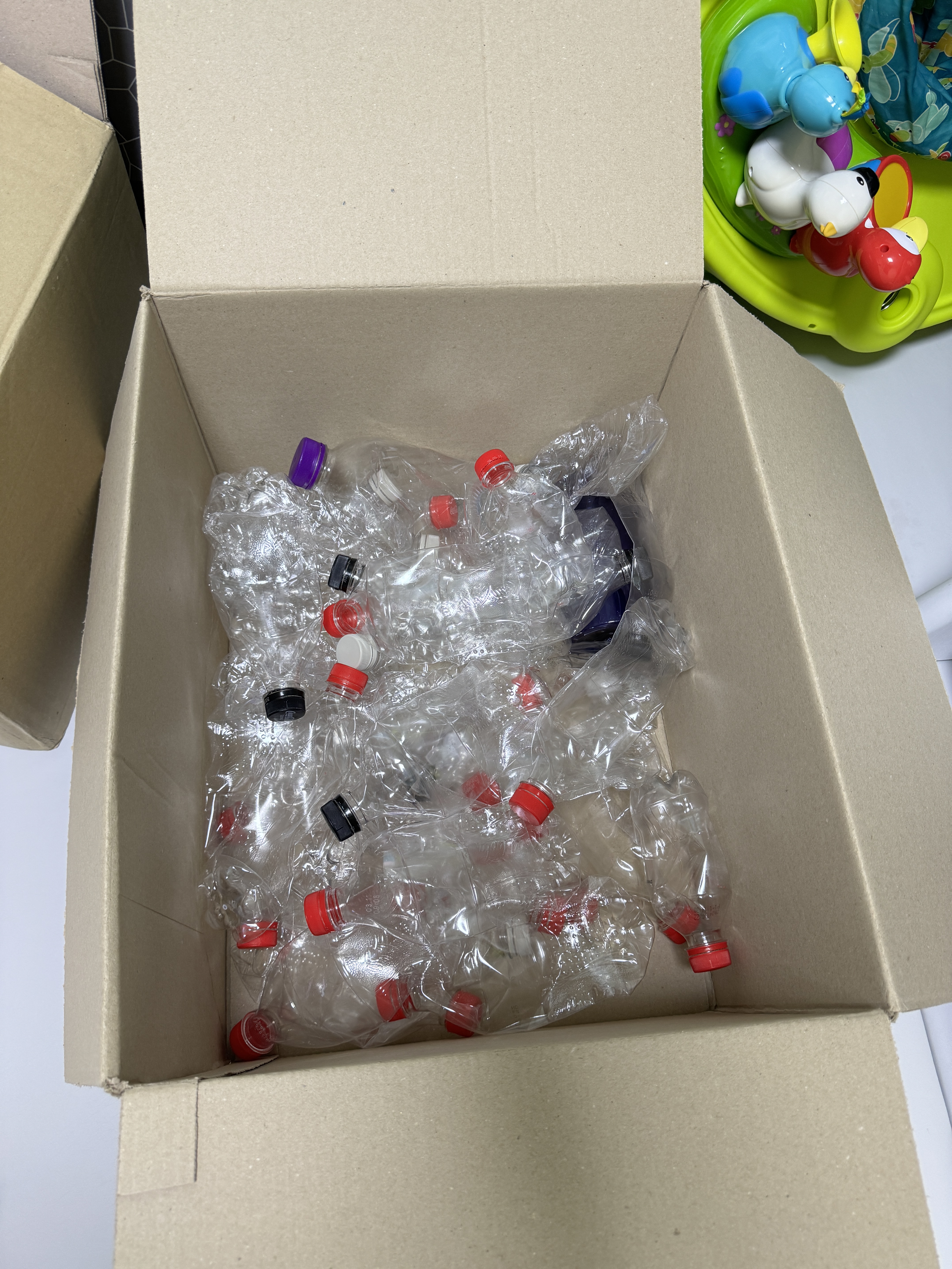 페틈병 씻어 말리고 택배 보낼 준비중