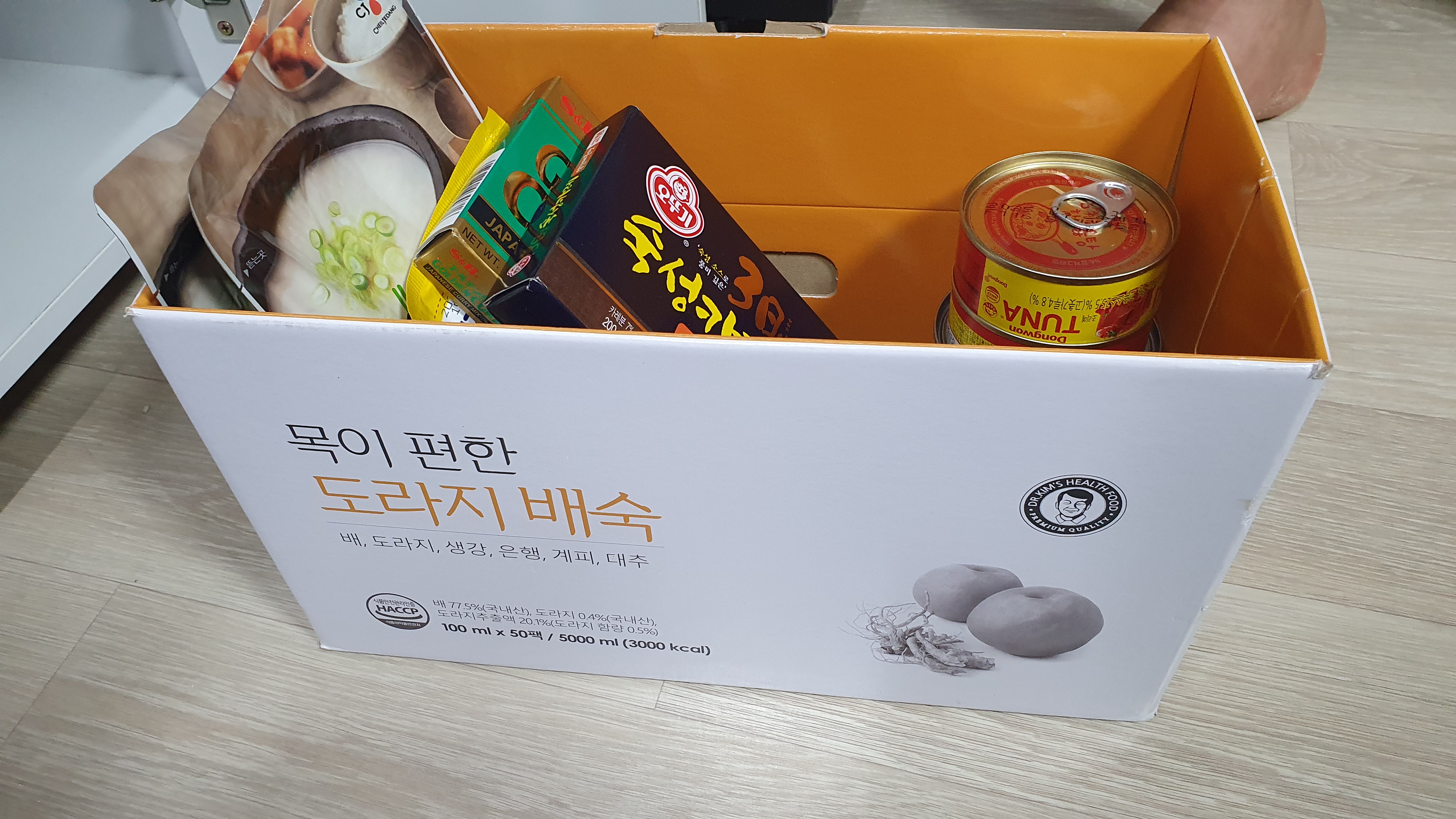 두꺼운 종이박스를 식료품 정리박스로 사용하고있어요.