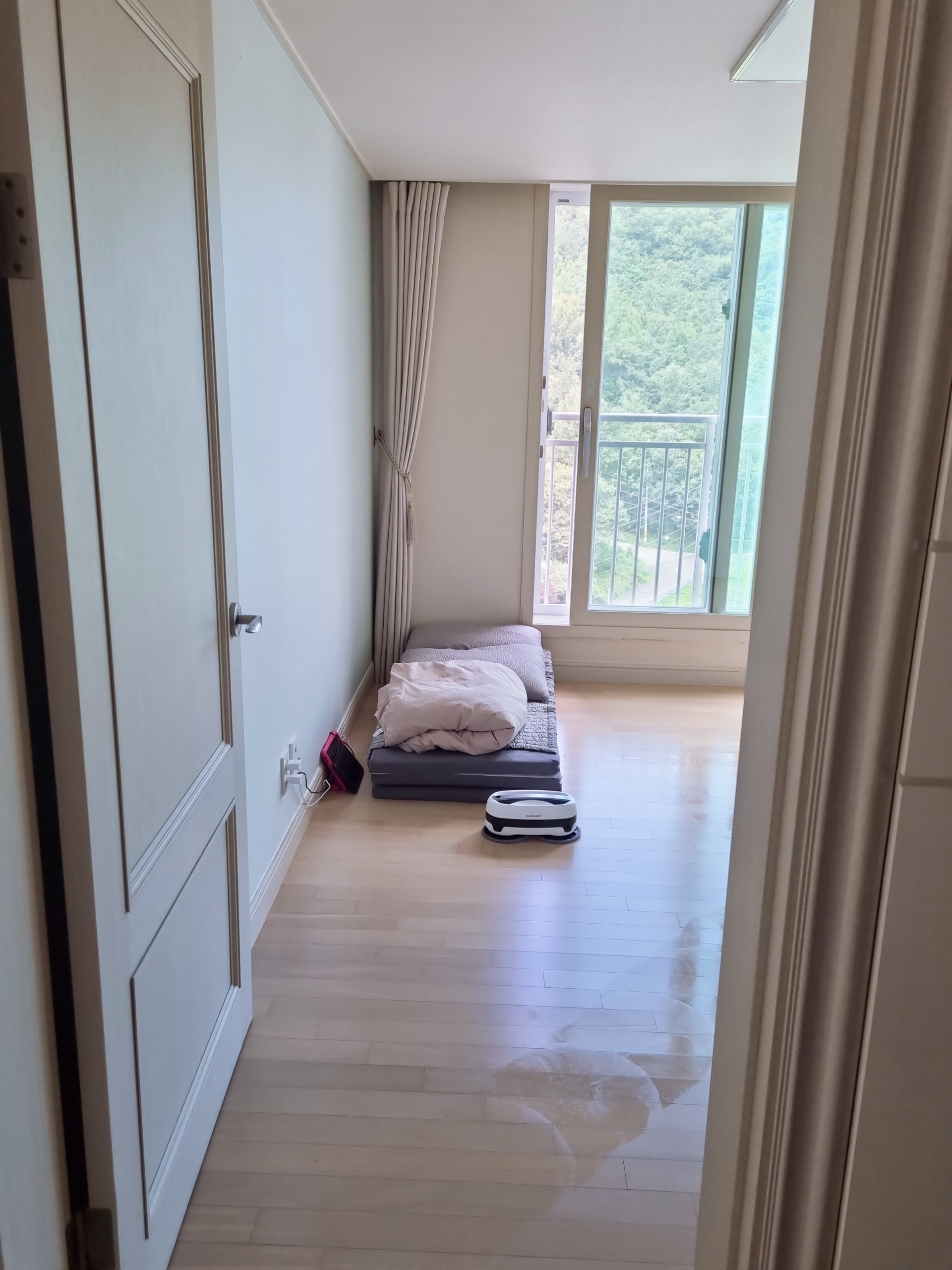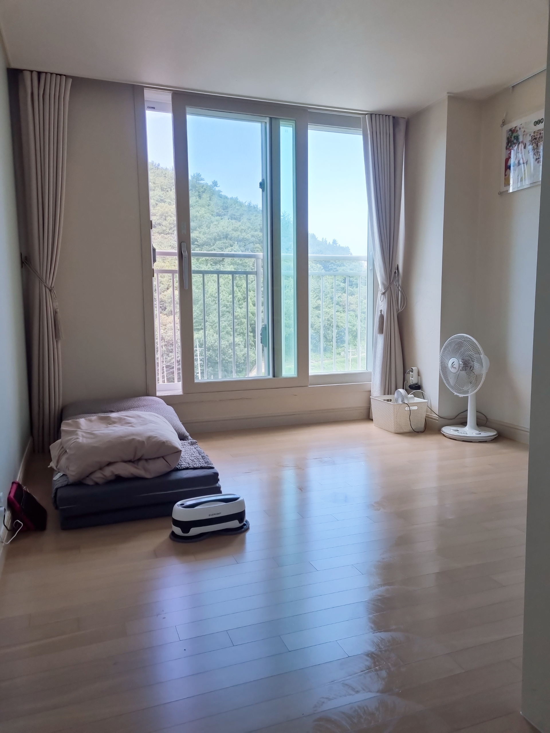 아이들 등교 시키고 이부자리 정리하고 청소합니다