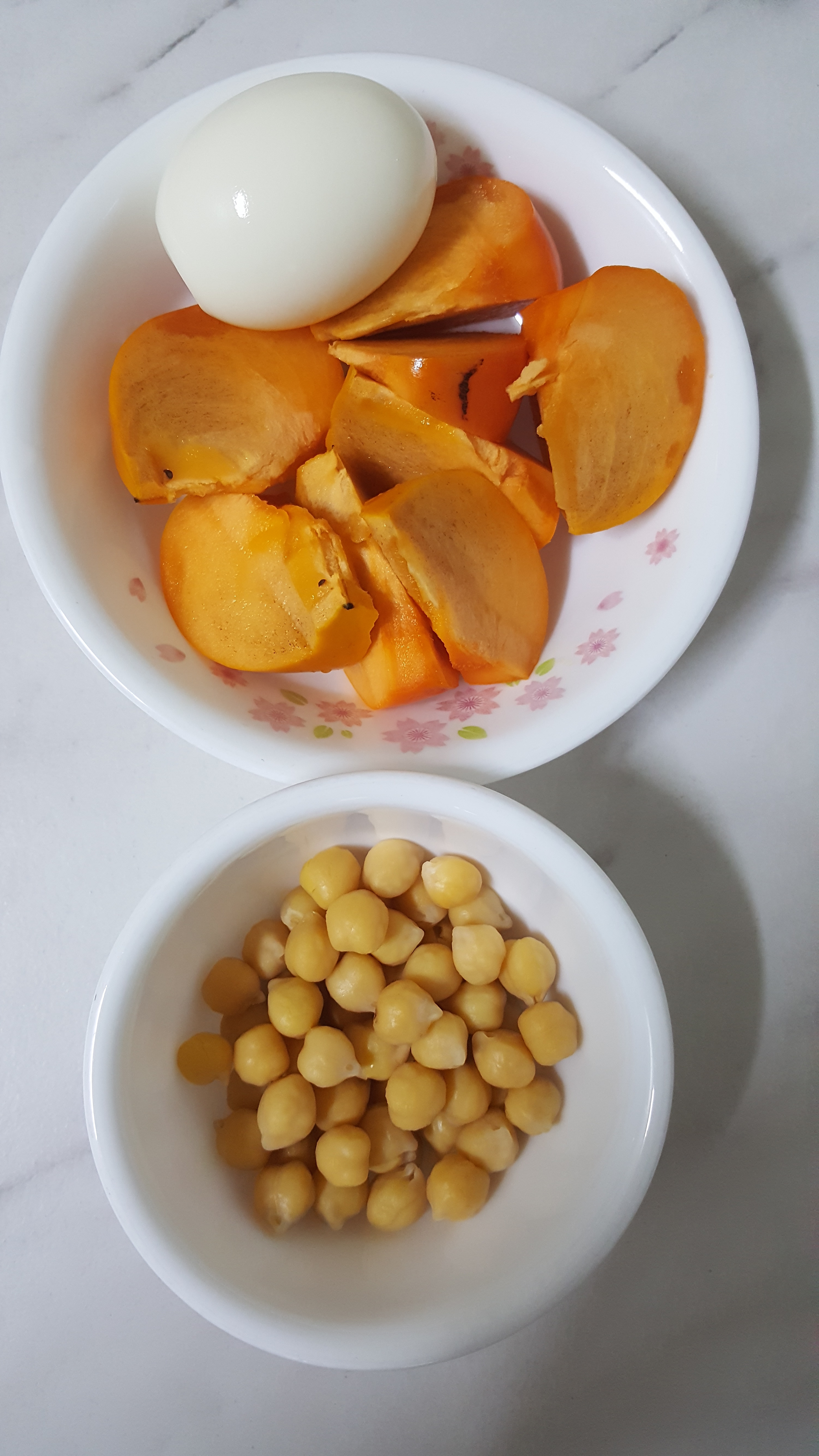 미리 삶아둔 병아리콩과 계란 꺼내고
