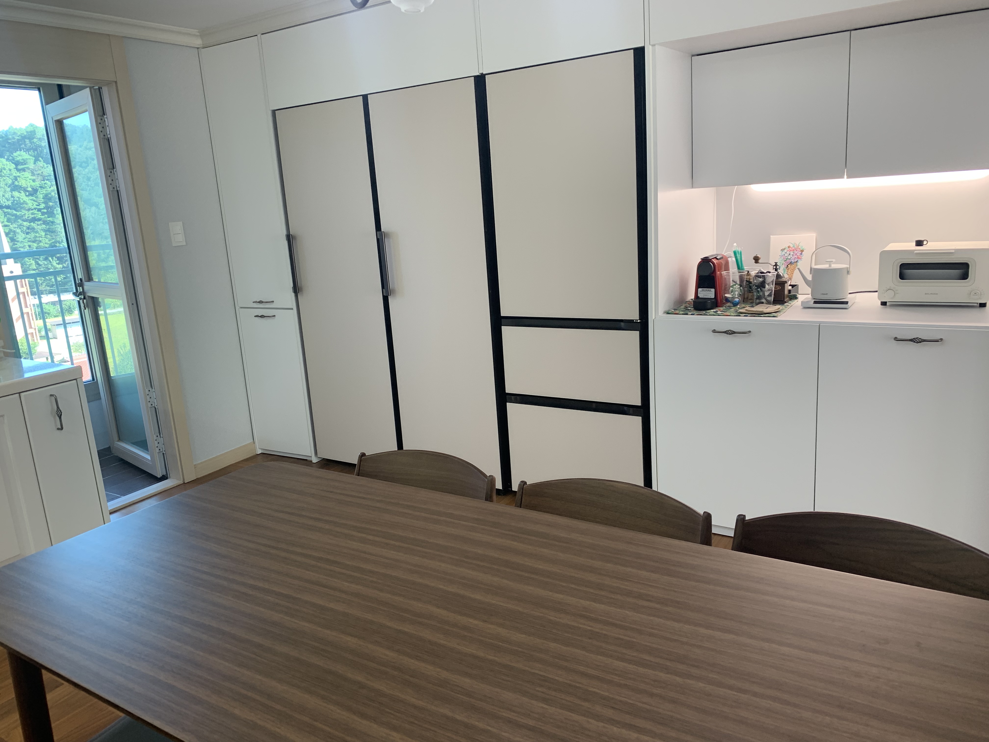 주방이 더 넓어보이는 장점이 있네요.