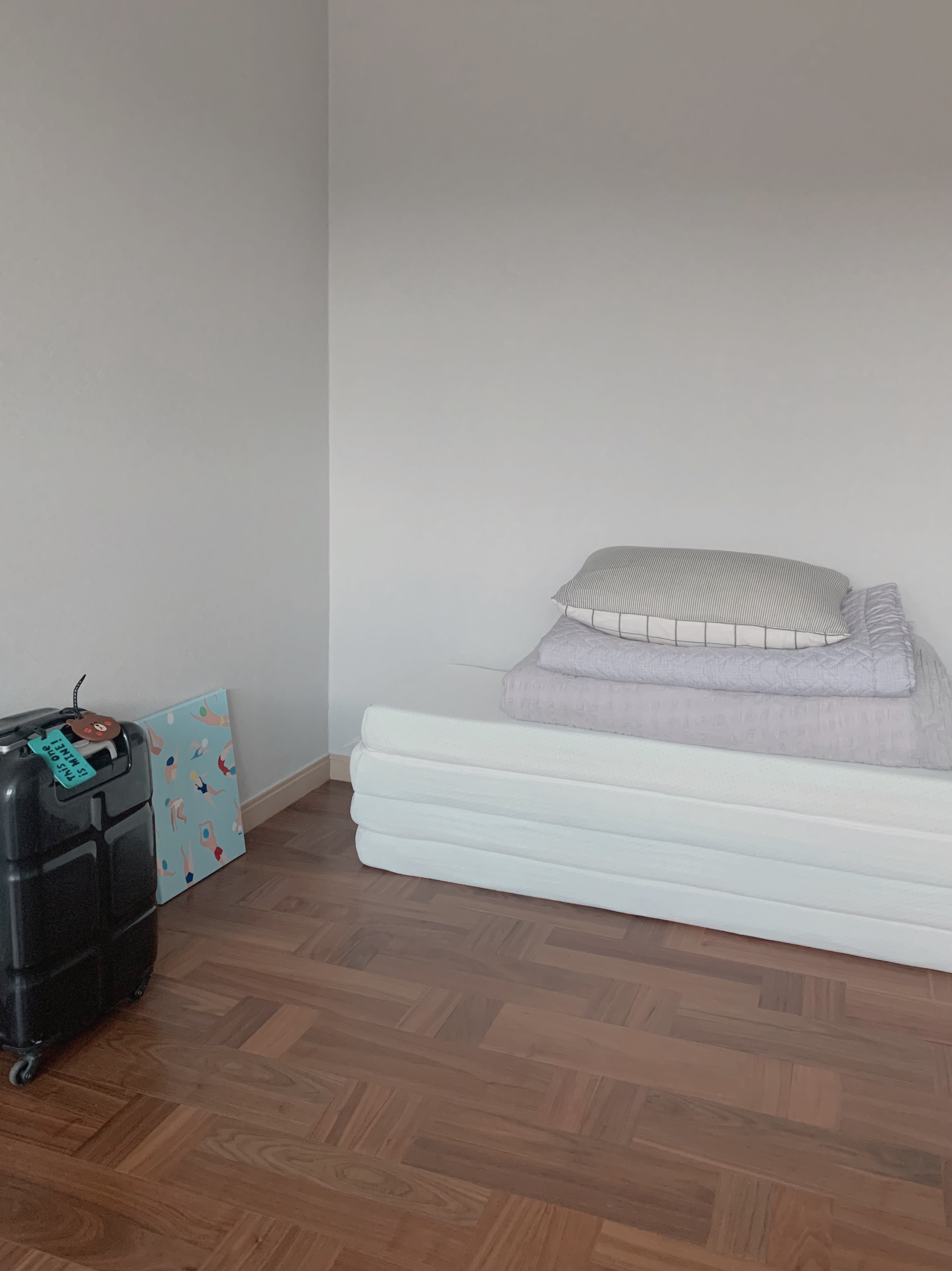 집에 손님이 오시면 토퍼를 꺼내서 잠자리를 마련해 드려요. 평소엔 아무것도 없는 빈 방이랍니다.