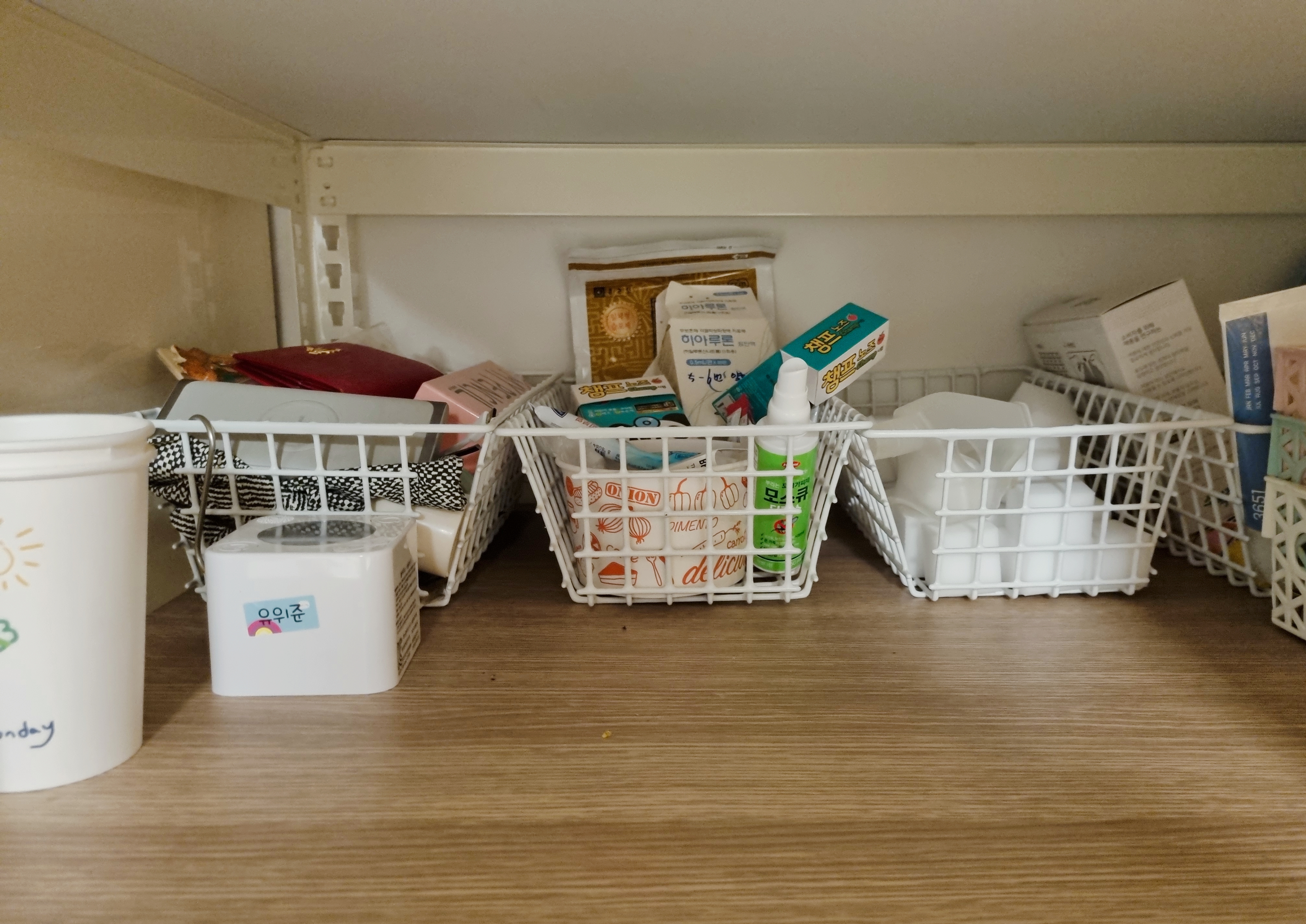 정리가 잘안되고 쌓아두기도 용의하지않은 제품들을 알맞는 통에 넣어두니 지저분함이 확 줄었어용