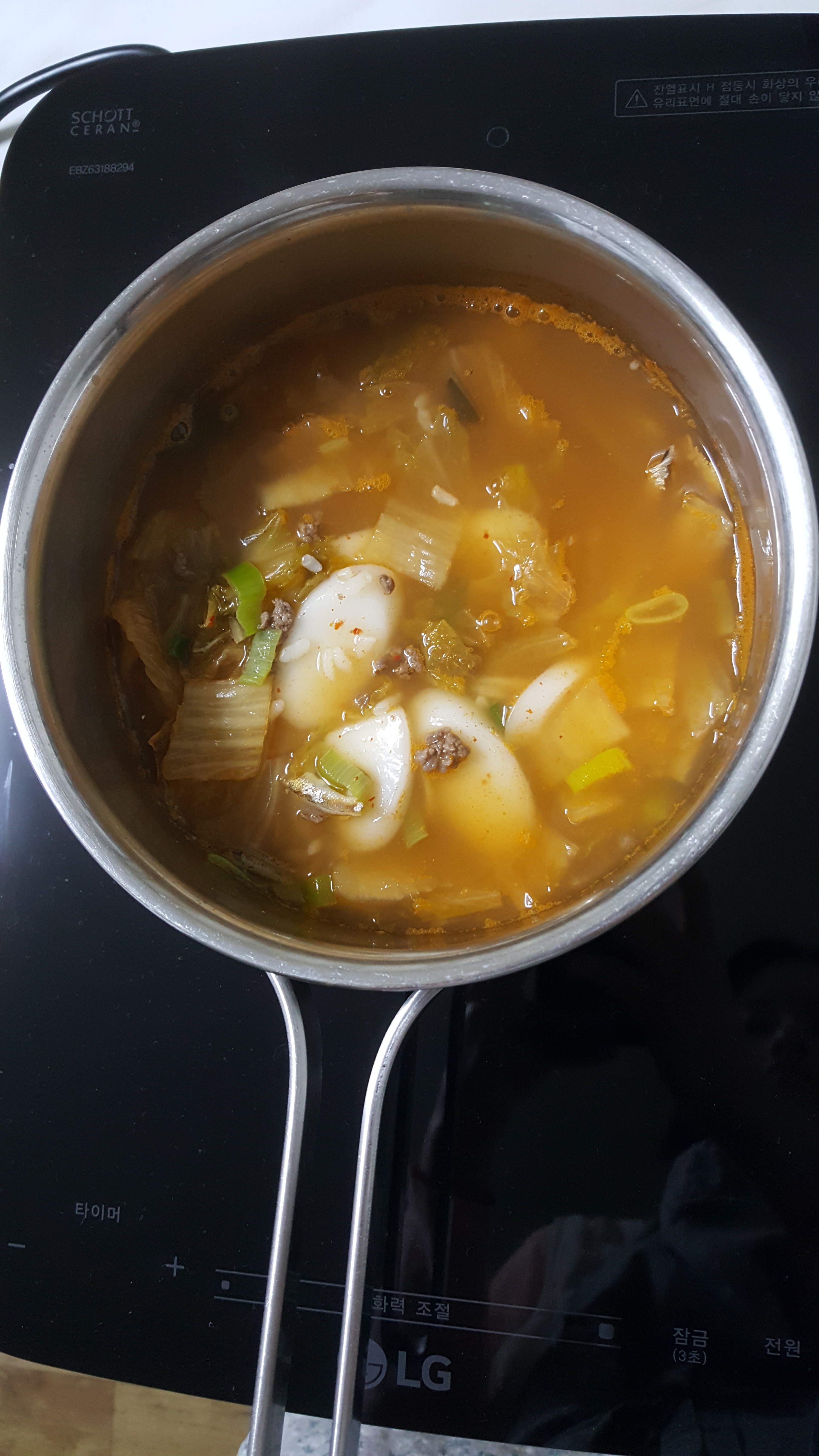 고향에서 겨울이면 자주 해먹던 김치국밥 끓였어요.
