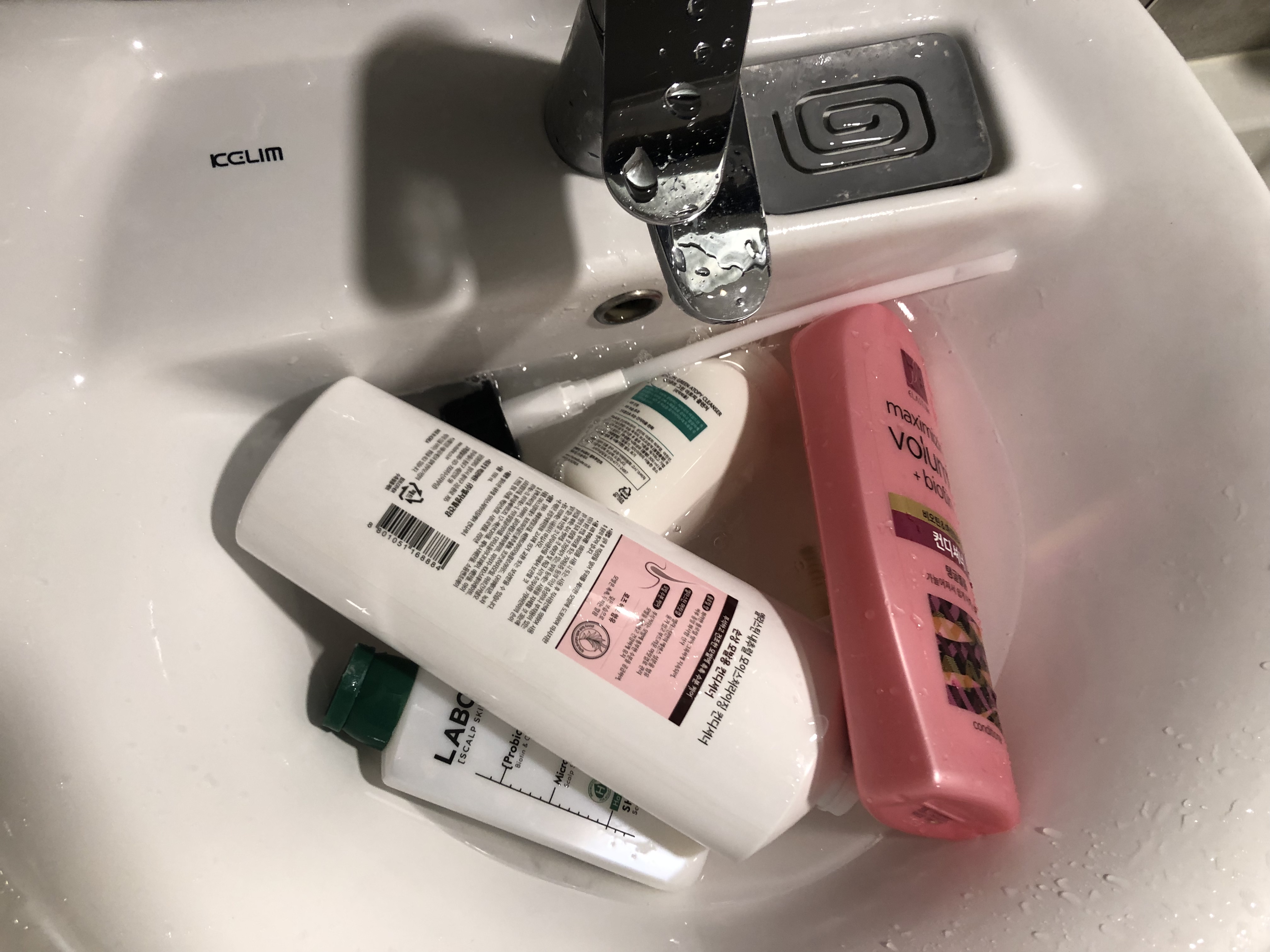 버릴 아이들! 샴푸와 린스는 남은통에 물 넣고 흔들어 비눗물 만들어 청소에 활용했어요. 버릴때도 알뜰히!
