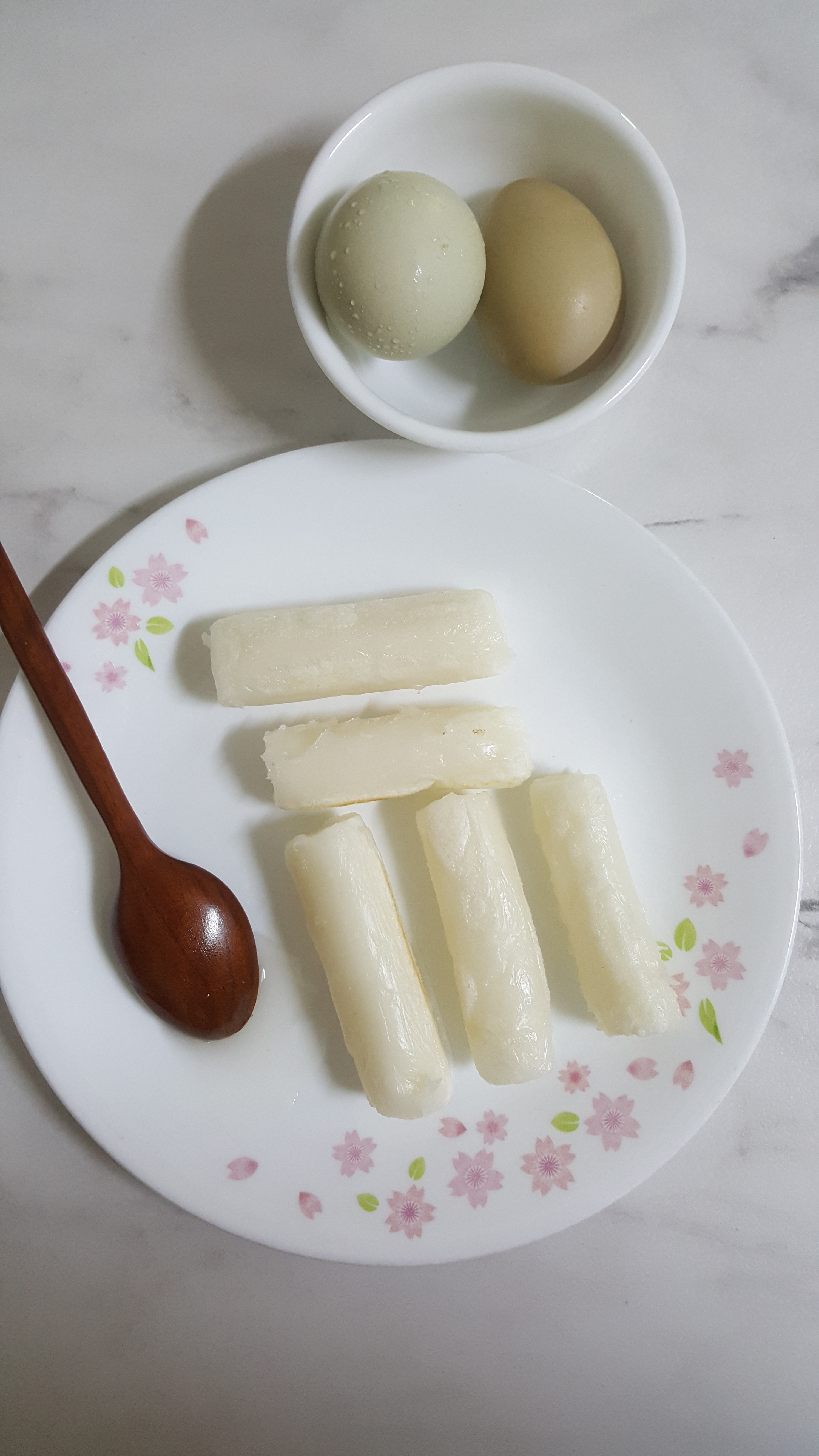 삶은 유정란으로 식사했어요.