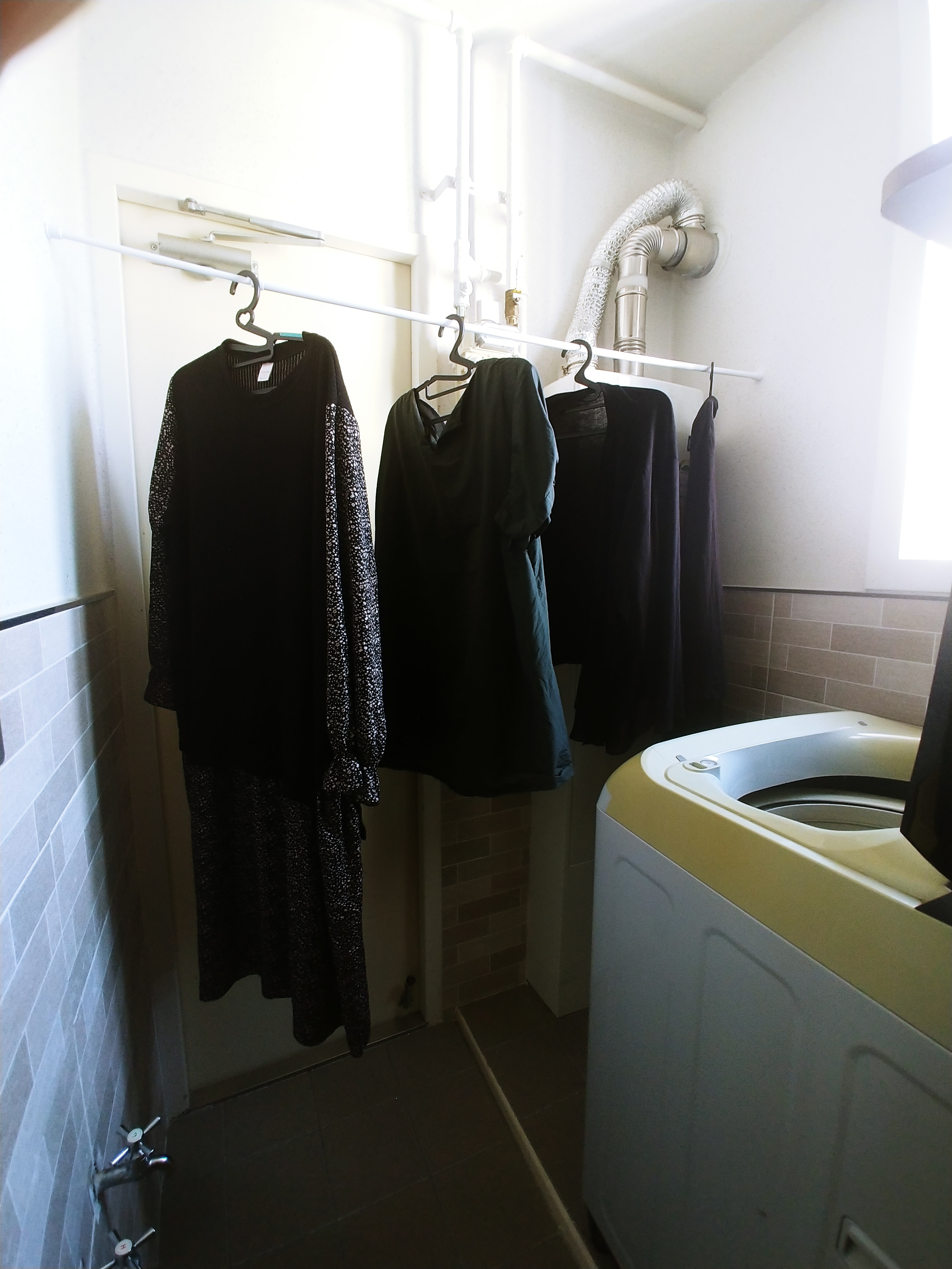 빨래 건조대에 걸면 바닥에 닿아요.
