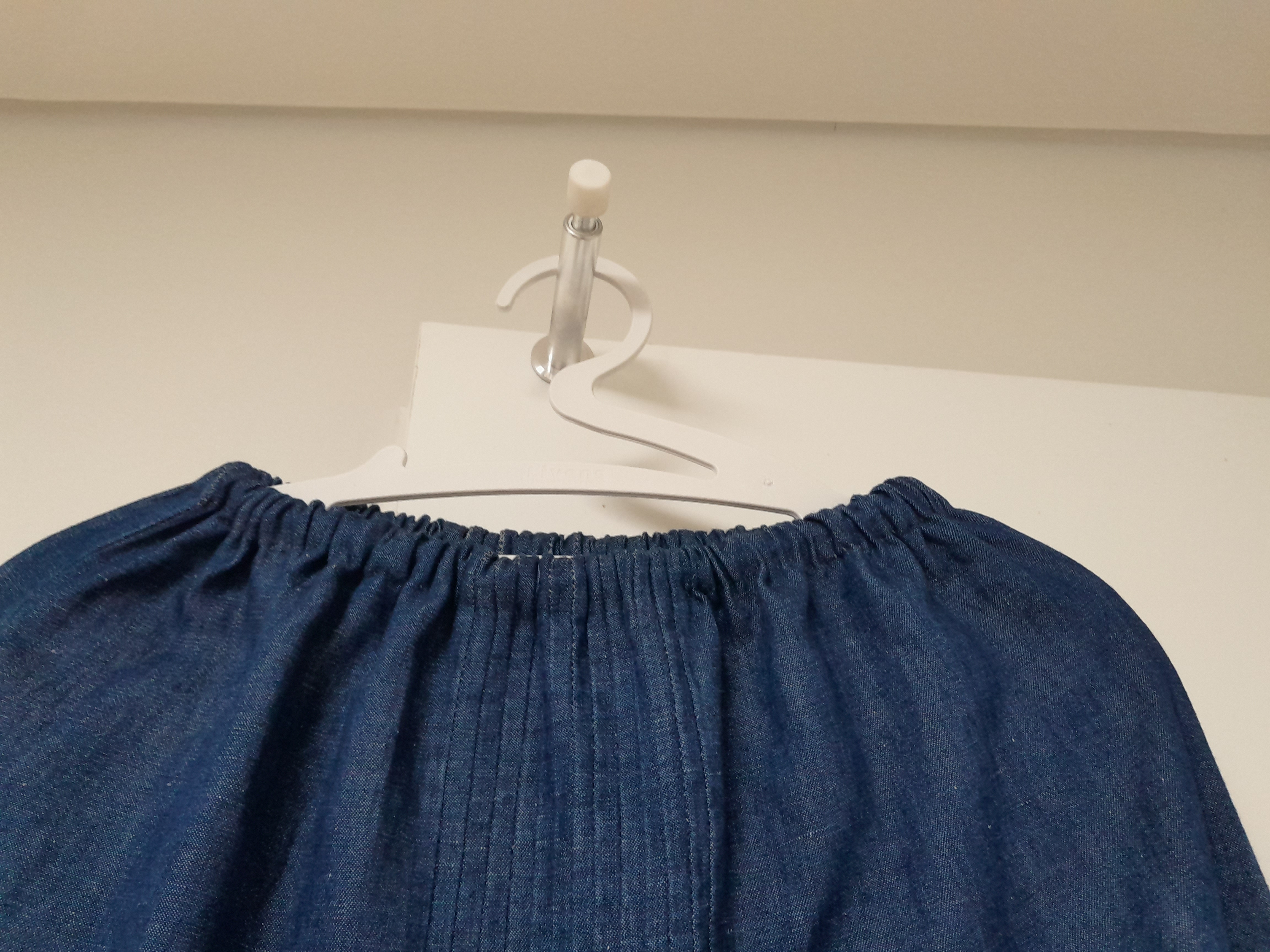 원피스 가슴쯤을 잘라 안으로 접어 꿰매주고 다이소에 있는 넓은 밴드를 넣어 허리 사이즈 맞추고..