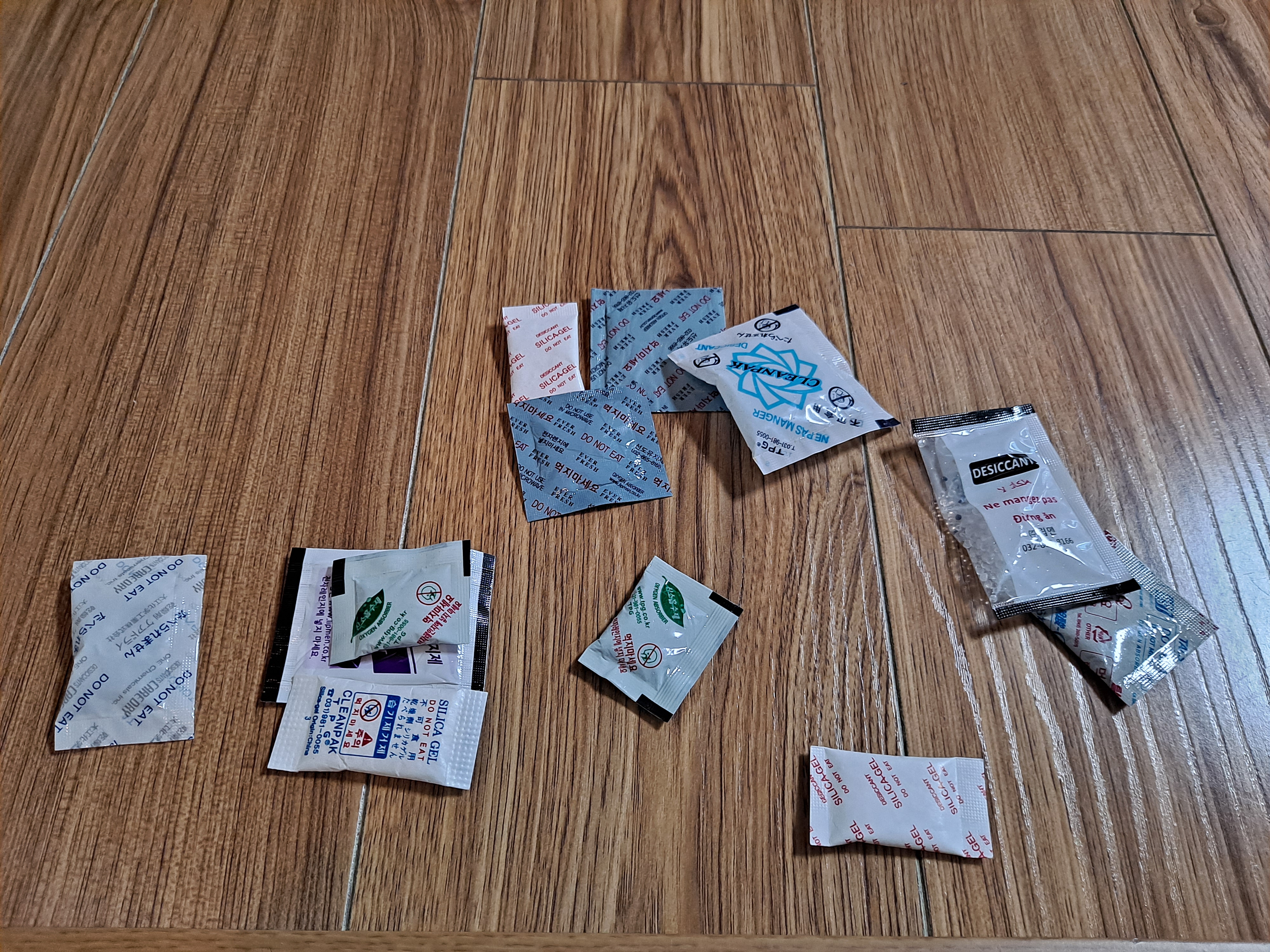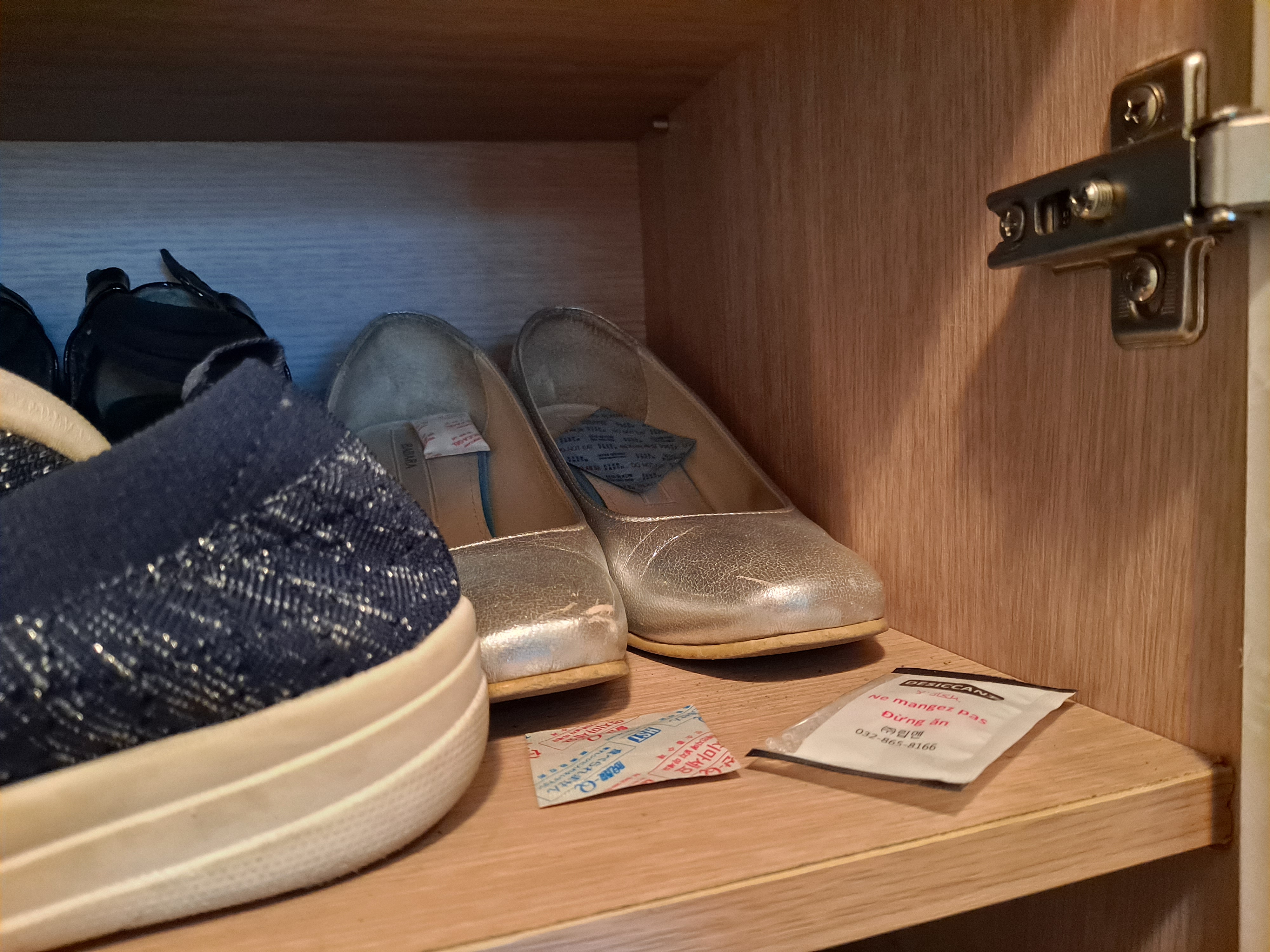과자봉지나 김 봉지 안에 들어있던 선도조절제나 탈취제, 습기제거제 등을 많이 모아놨어요~ 특히 신발장은 냄새가 많이 나서 습기조절제나 탈취제 등을 넣어놓으면 확실히 냄새가 줄어들어요 예전엔 신발장 냄새가 심했는데 요즘은 냄새가 안나서 신발장 열 때 걱정이 안되네요~ 너무 좋습니다^^