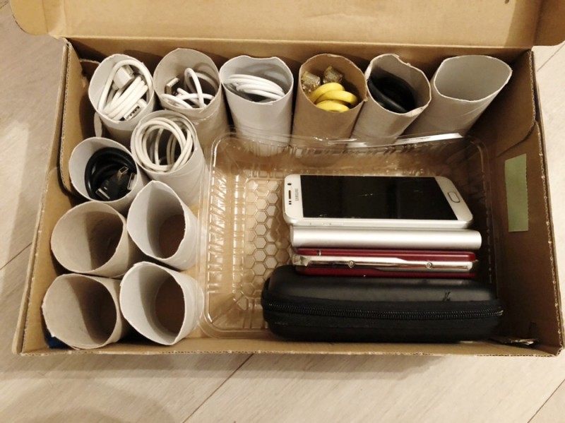 자주 생기는 휴지심. 그냥 버리지마시고 케이블,선,기타 길쭉한 것들 정리해보셔요! 높이 안맞는건 휴지심을 자르면 됩니다 ㅎㅎ