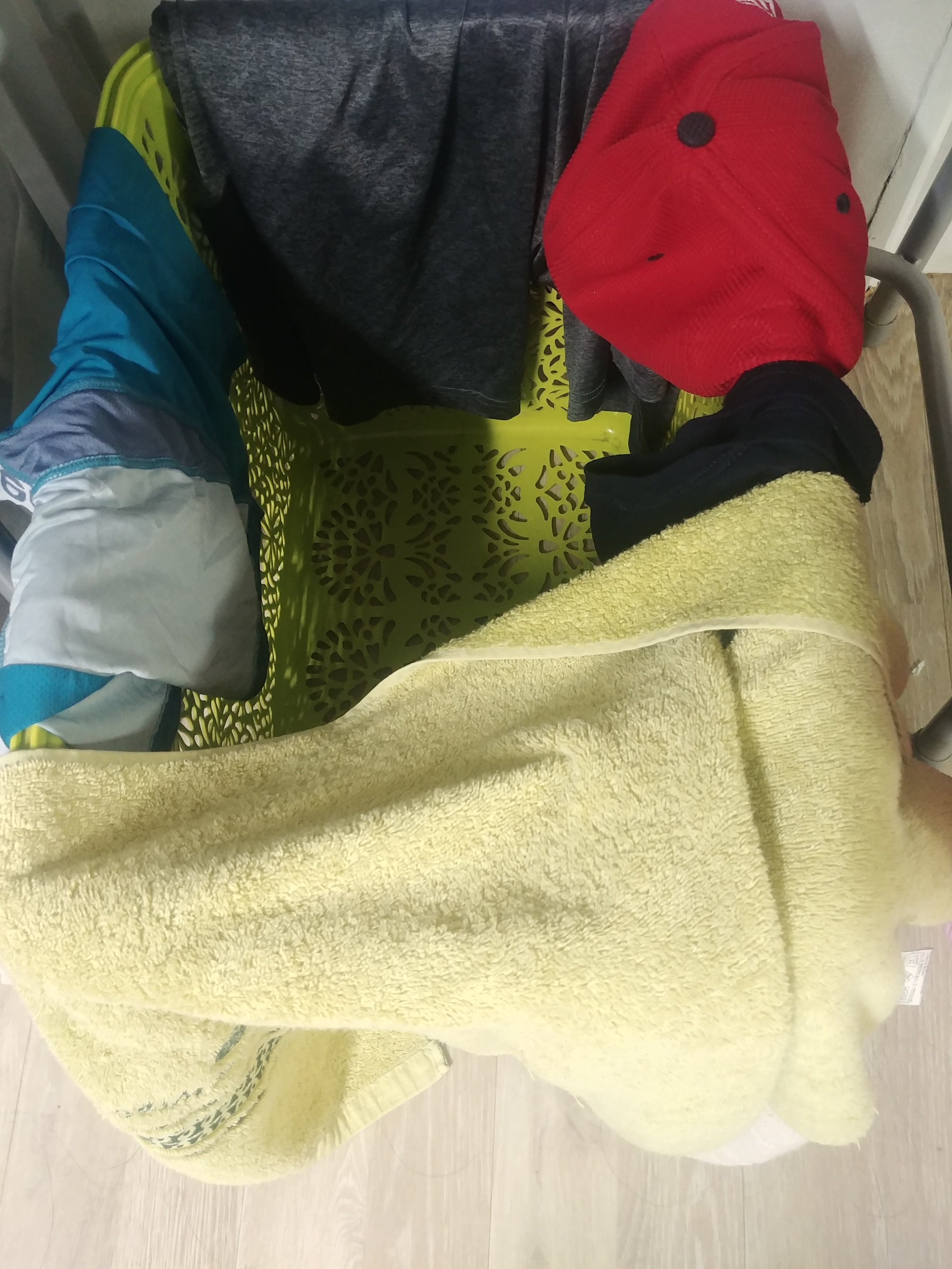 저는 젖은 빨래감은 항상 바구니 가장자리에 널어둬서 건조되게 놔뒀다가 빨아요