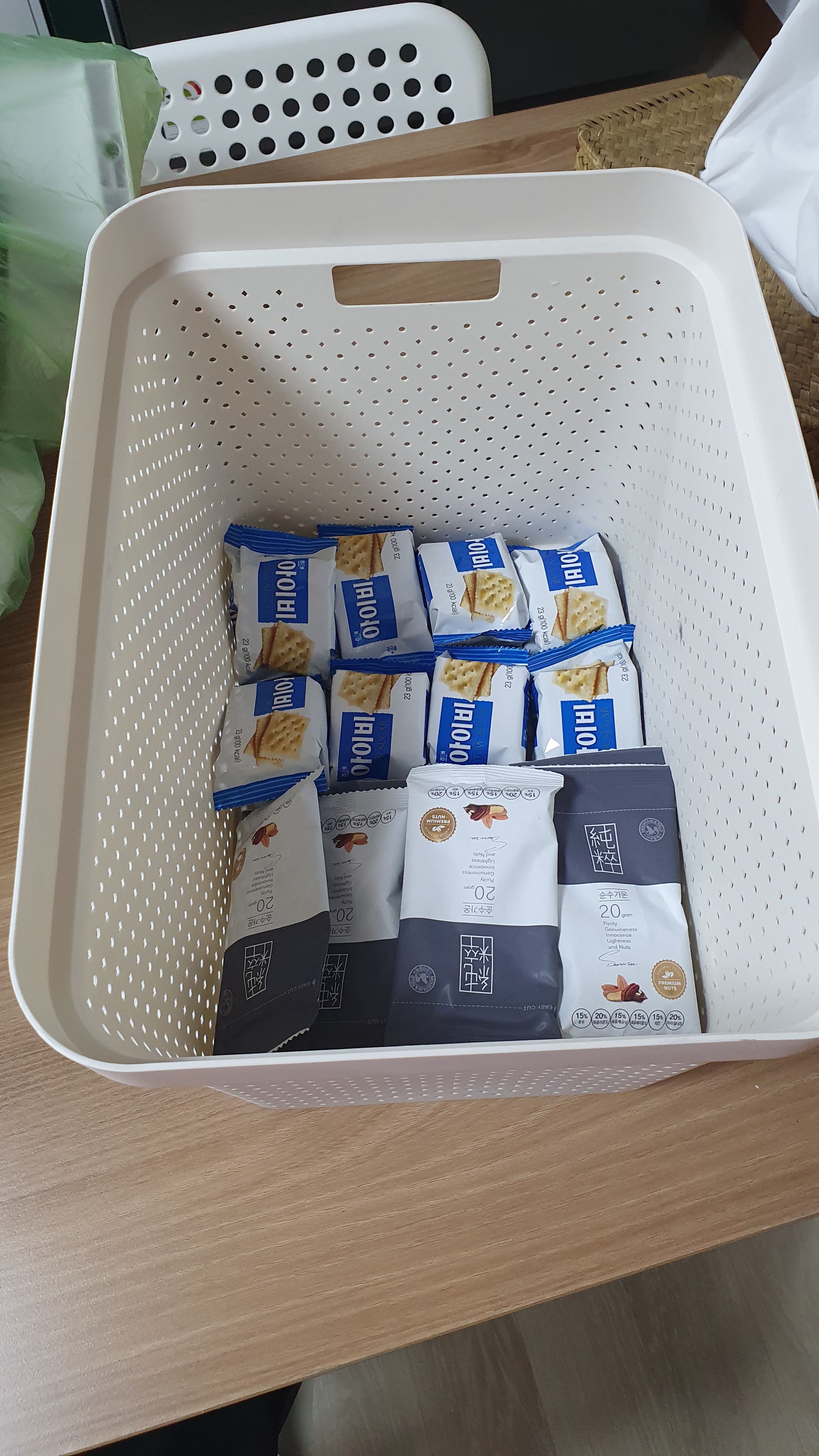 즐겨먹는 과자는 큰통에 담아서 보관해요. ^^