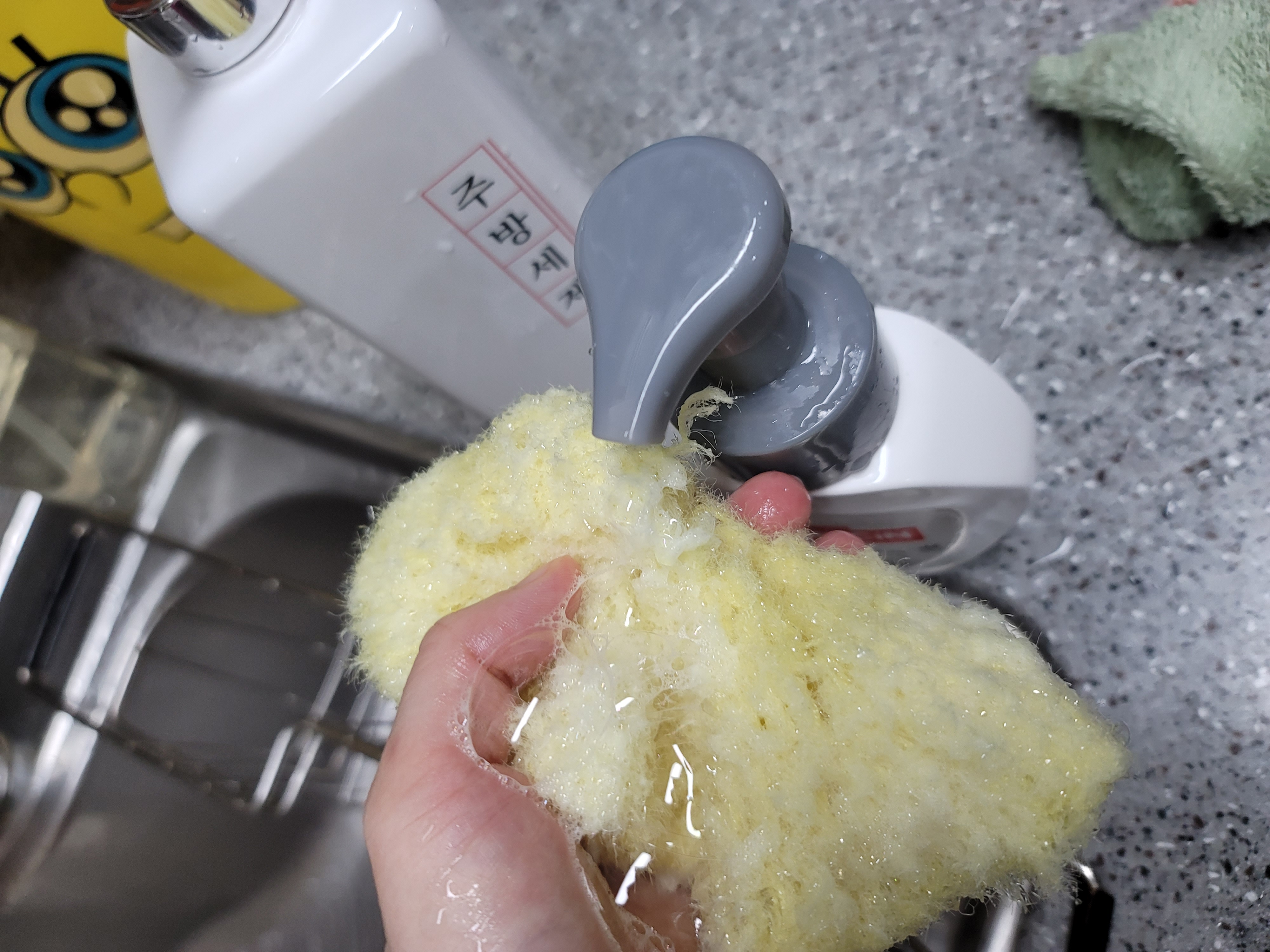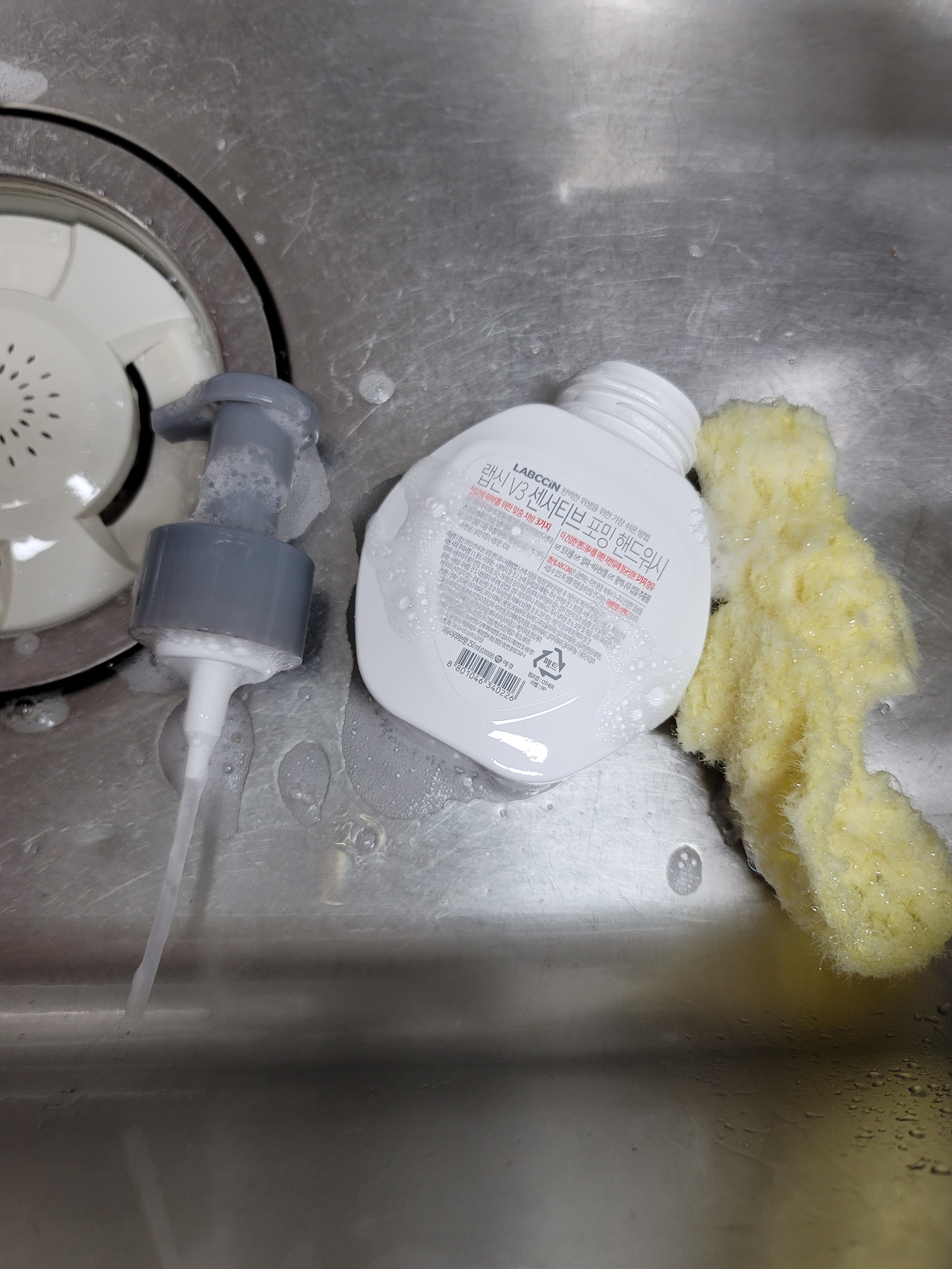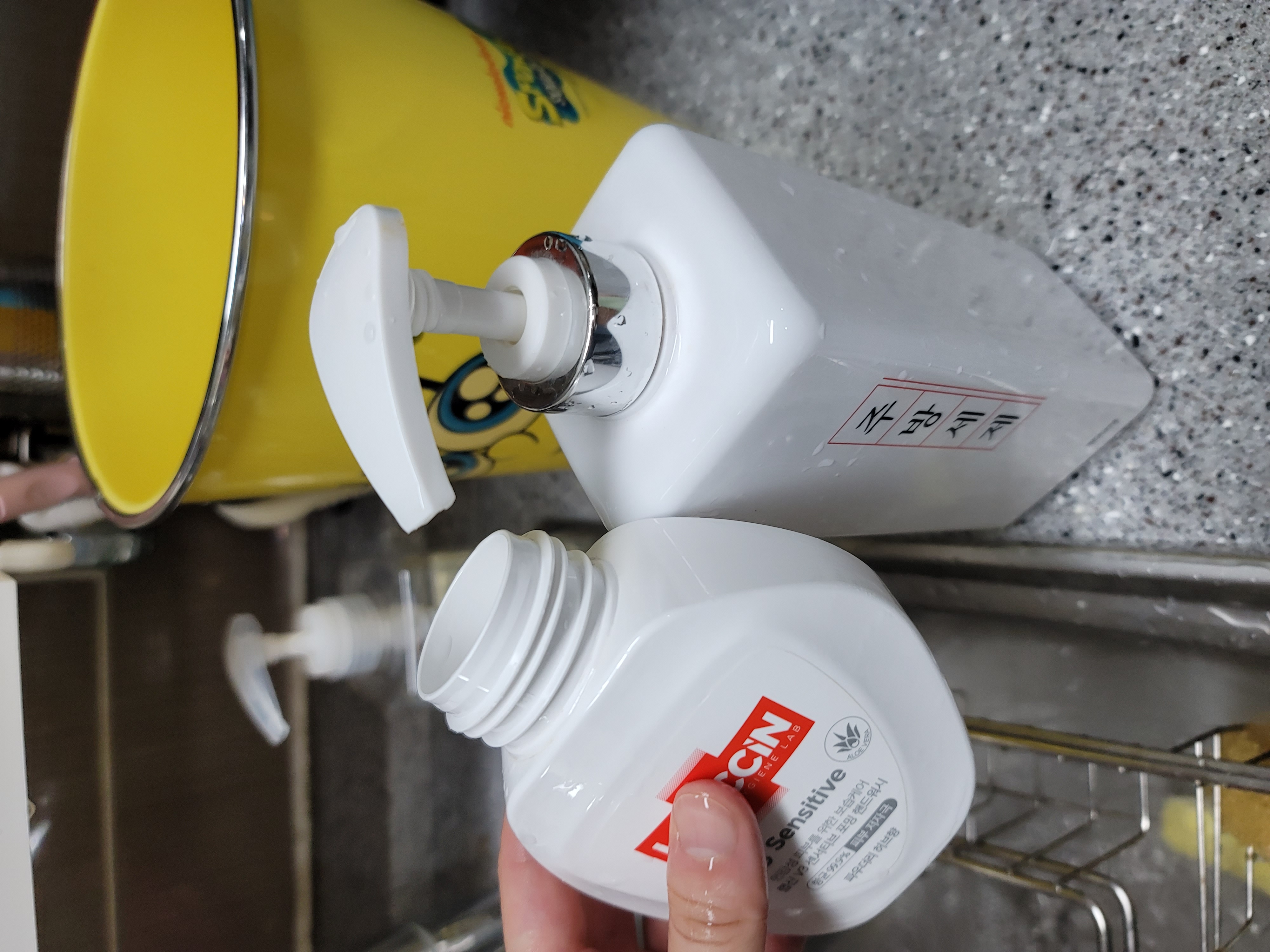손세정제다쓰고 깨끗하게헹궈서 퐁퐁이랑물이랑섞어서 흰석해서써요