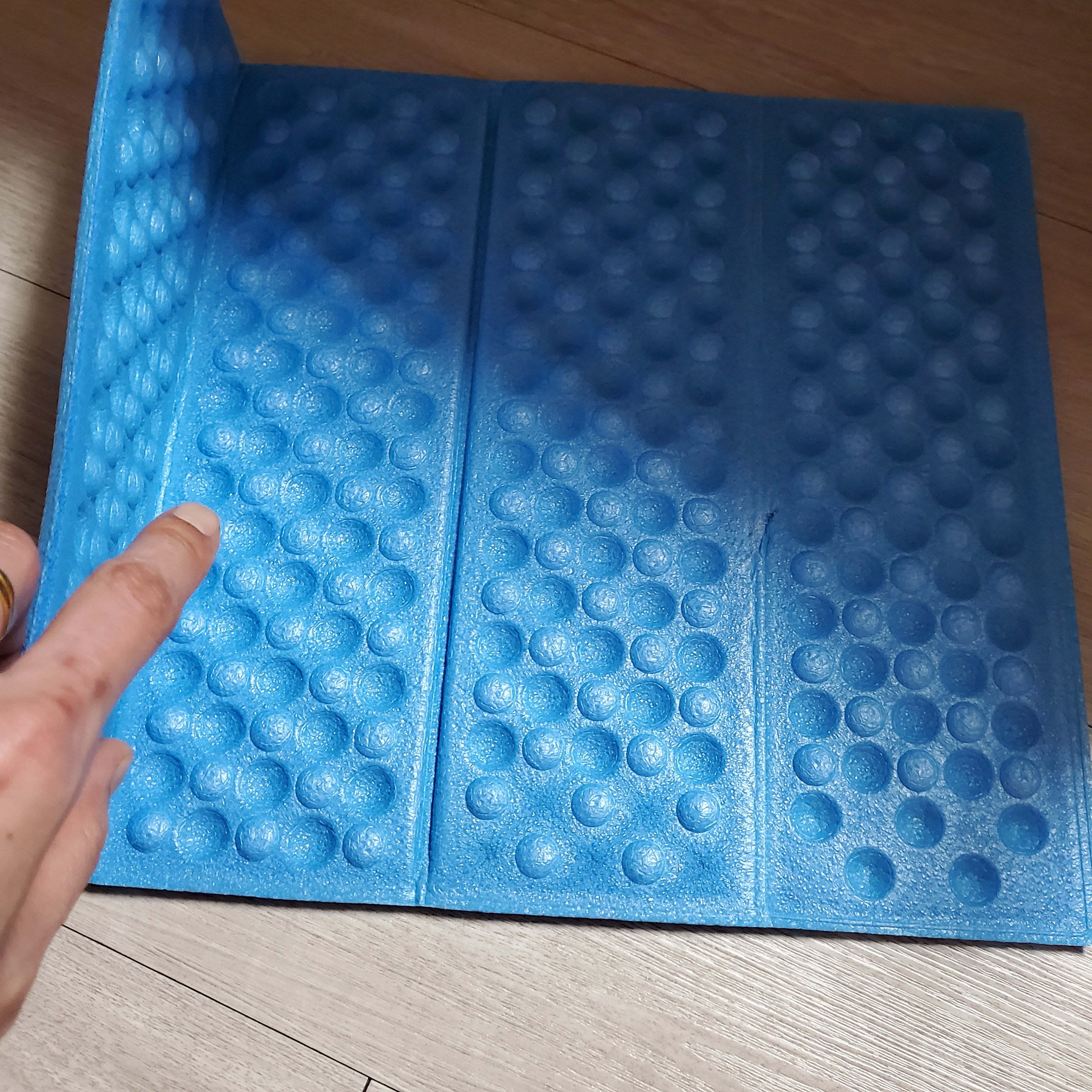 찜질방 방석을 수건에 감싸고 매듭을 대바늘로 단단히 꿰맸더니 주방 발매트 완성 했어요~~~