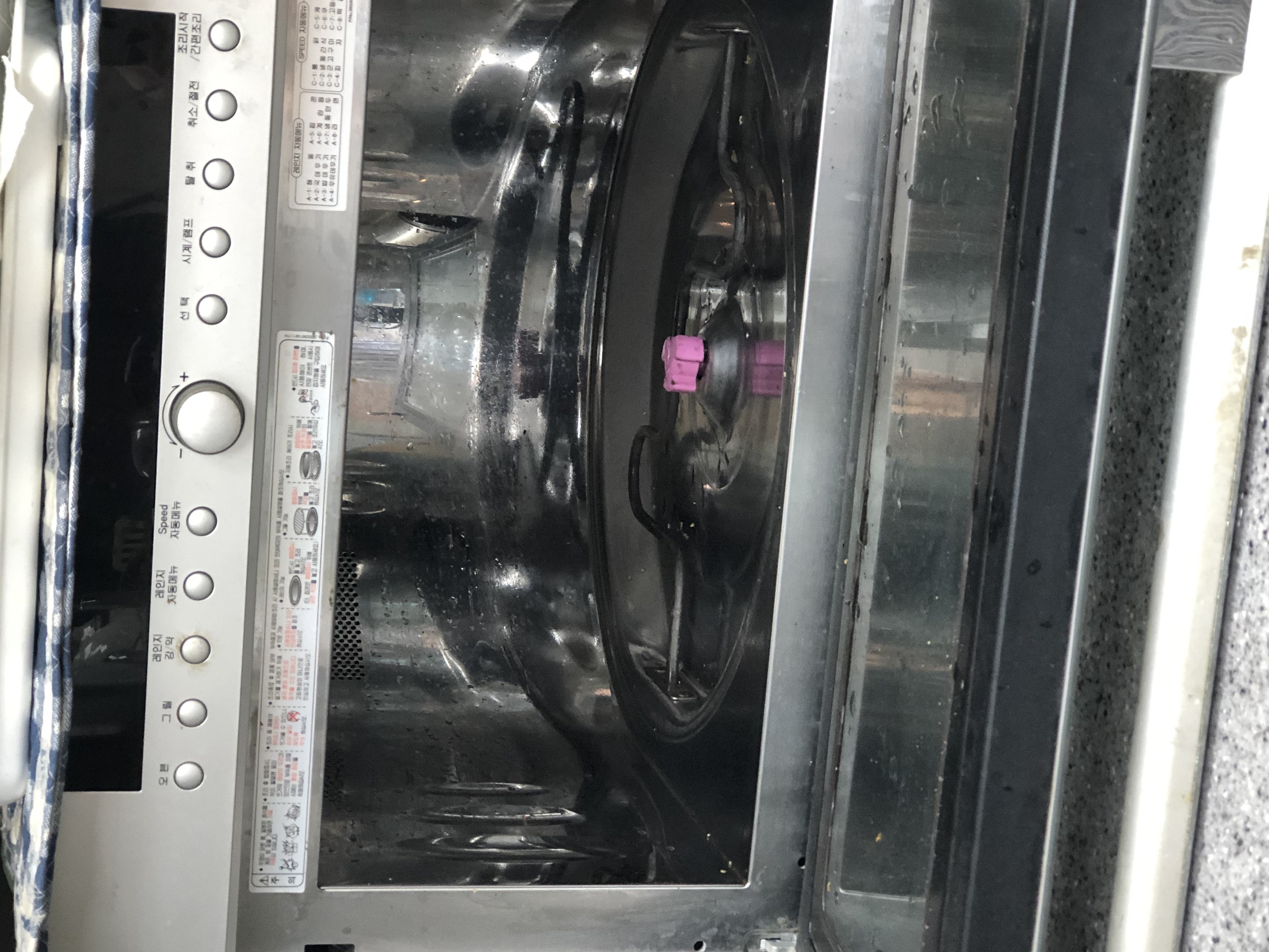 식초물을 돌려주면 살균도 되고 안에 때가 불어서 청소가 쉬워요!!! 오랜만에 하니까 힘들었지만 뿌듯하네요^_^ 안에서 막 미라가 된 음식물들이 나왔어요 ㅠㅠ