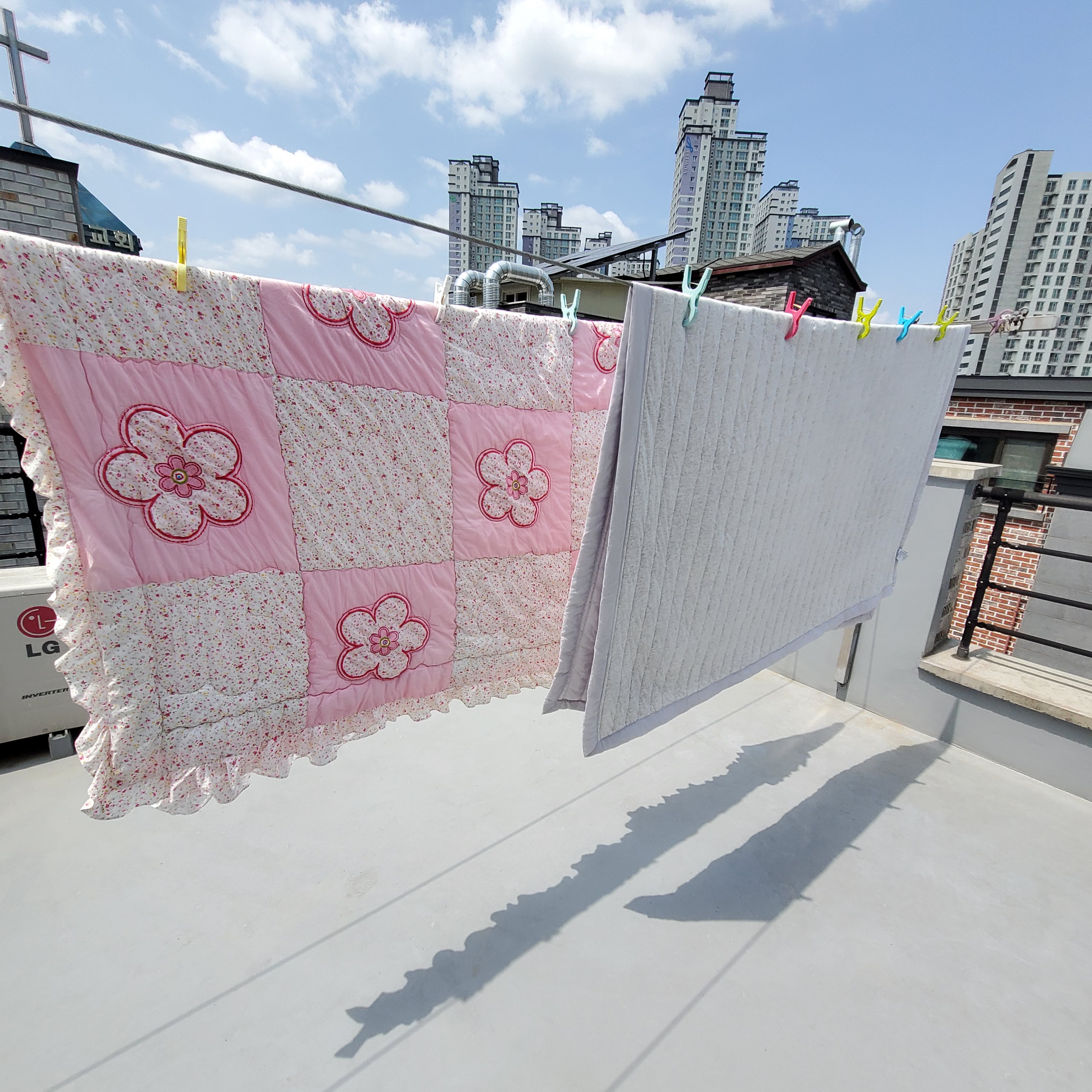 여름 볕이 이럴땐 너무 고마워요~ 세탁후 바싹 마른 이불 사용할때 기분이 참 좋아요^^