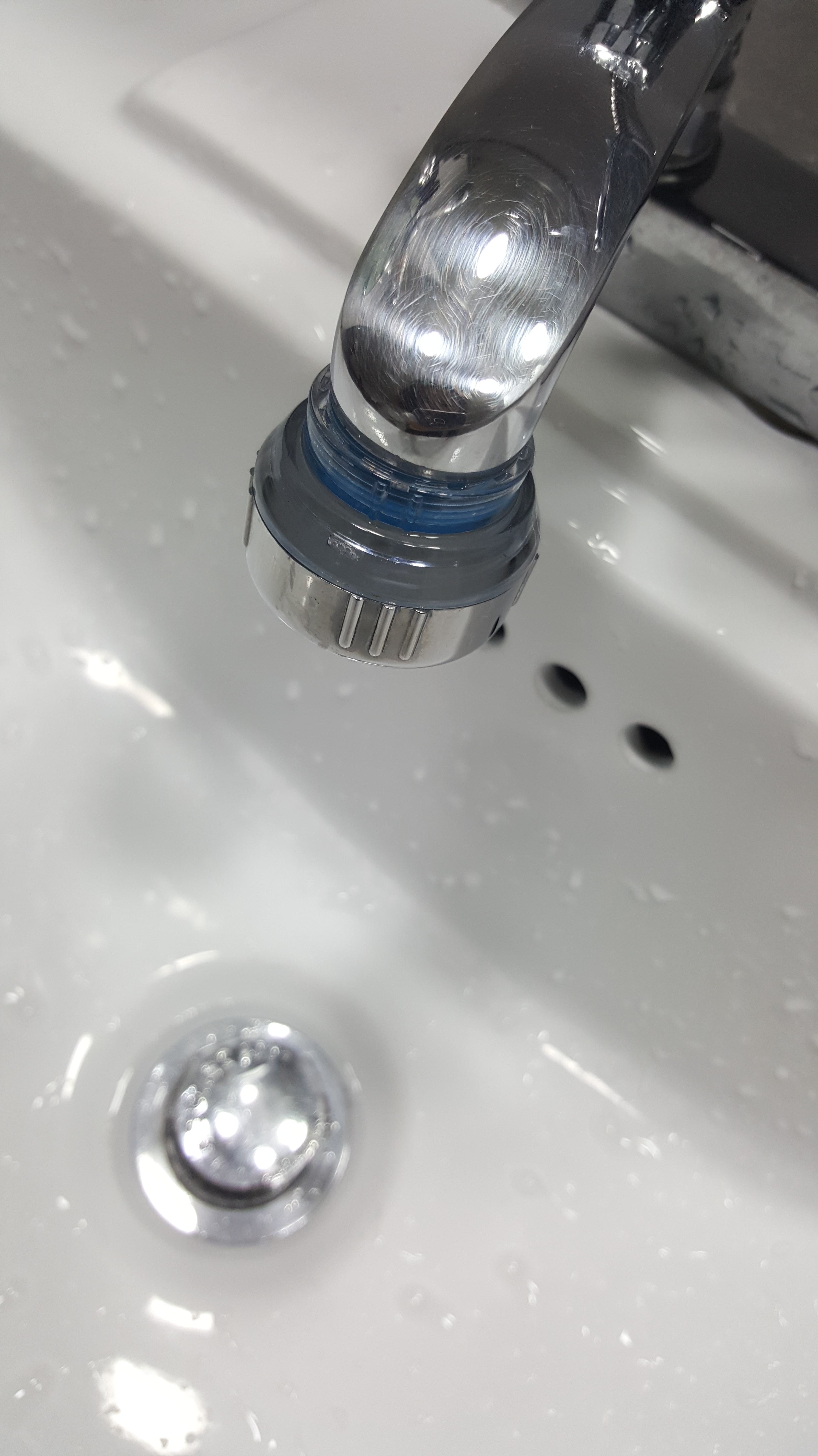 절수 필터 사용해요.물을 약하게 틀어도 수압이 강해져서 물이 절약돼요.