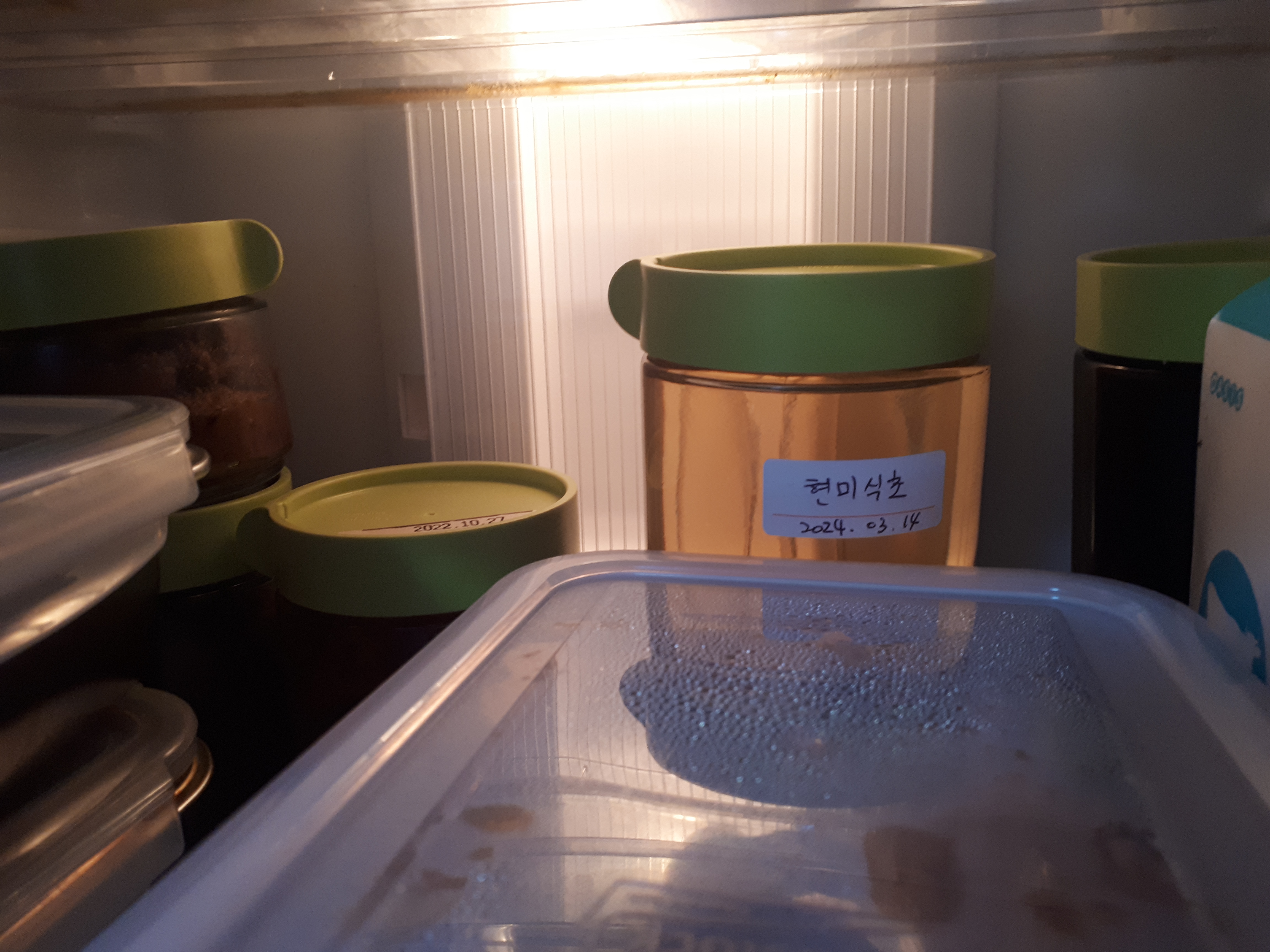 저희집 냉장고는 안쪽에 넣으면 재료가 얼어서 문제였어요 냉장고도 너무 작아서 궁리하다 이 안에 여분의 고추장 간장등을 두었어요 소금이 있는 양념들이라 그런지 얼지않아요