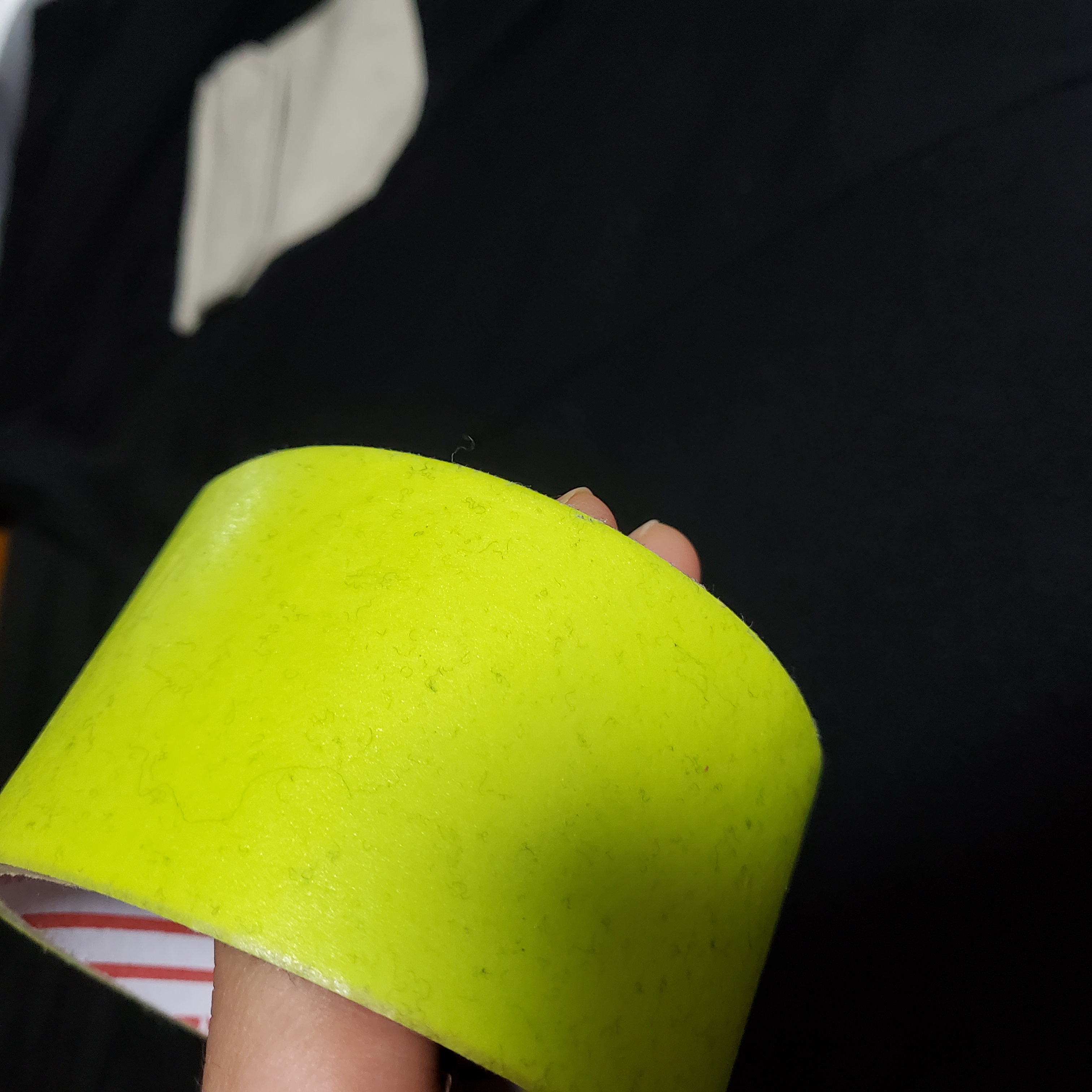 검은 티셔츠 붙은 먼지 제거 하는데 돌돌이가 망가져 종이테이프로 돌돌이 대신 끈끈한 부분 쪽으로 붙여서 손에 끼고 굴려주면 돌돌이처럼 먼지제거 쉽게 되요~~^^