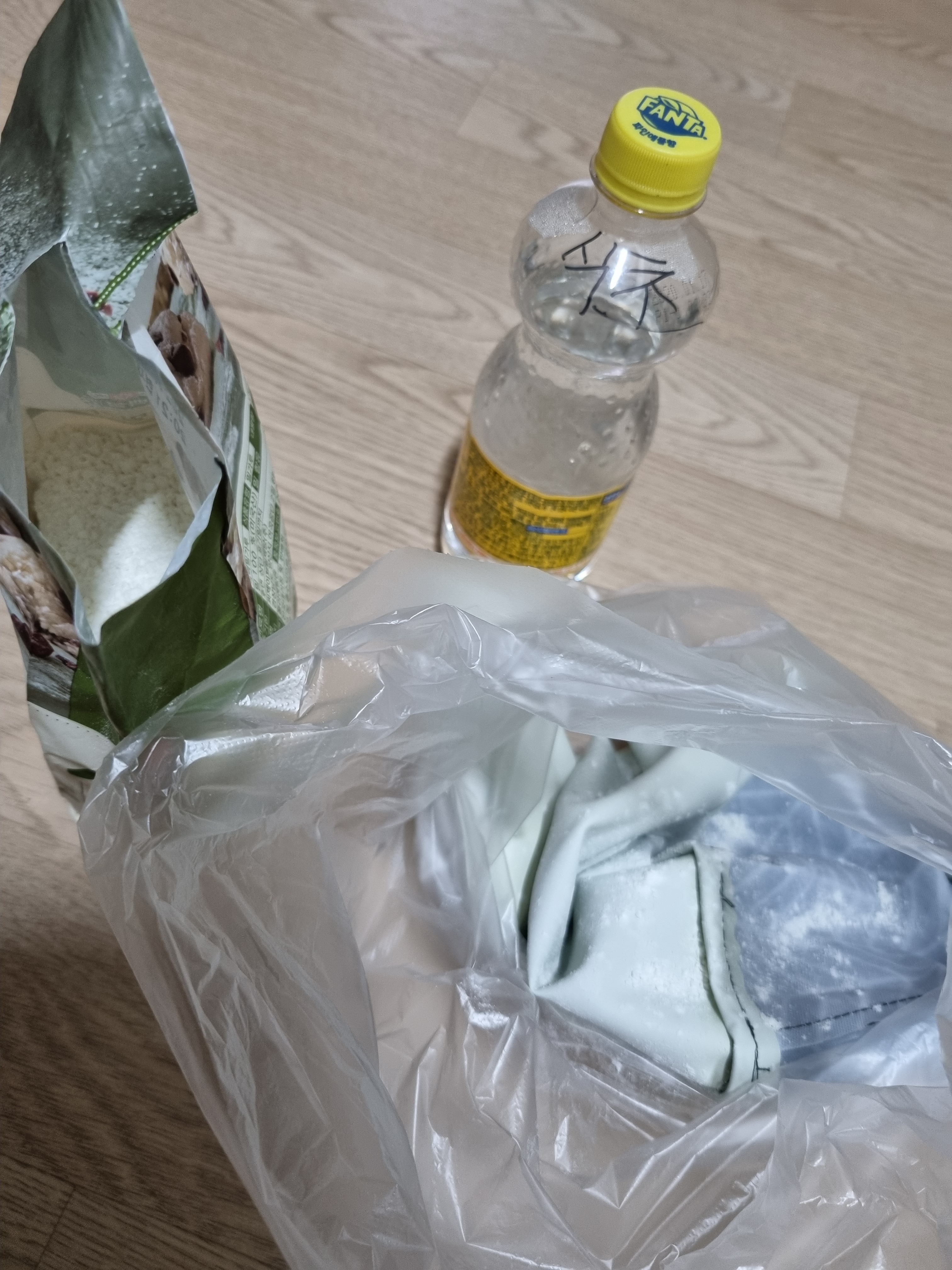 고무장갑뒤집어서 밀가루 투하
