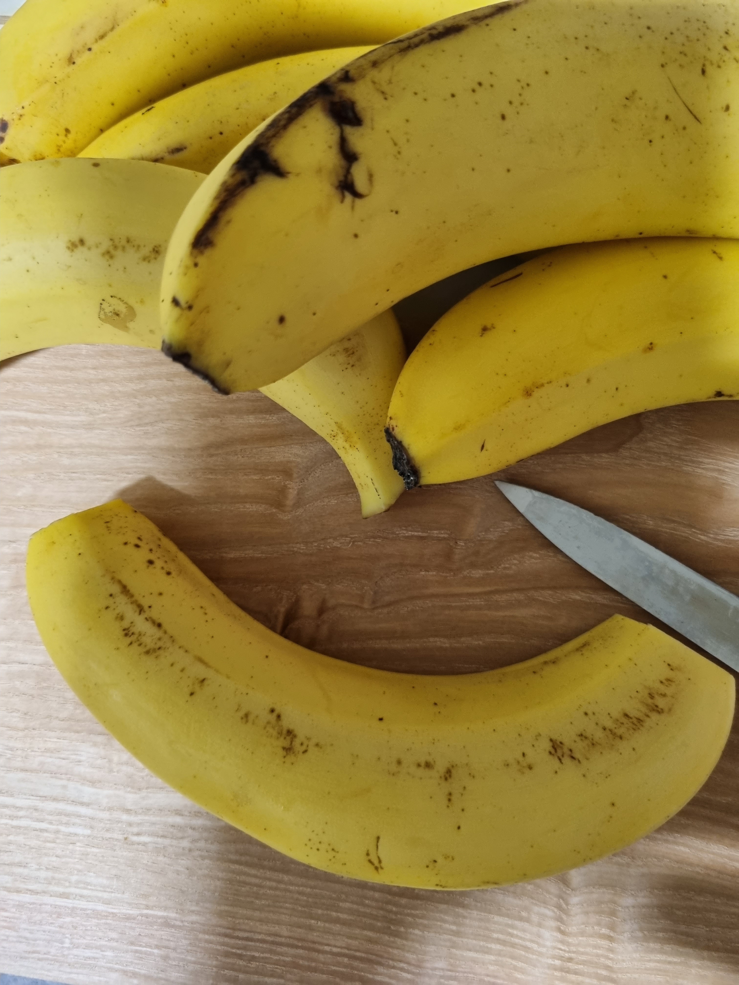 ㅡ 바나나를 낱개로 잘라요. 앞뒤부분 자르세요.