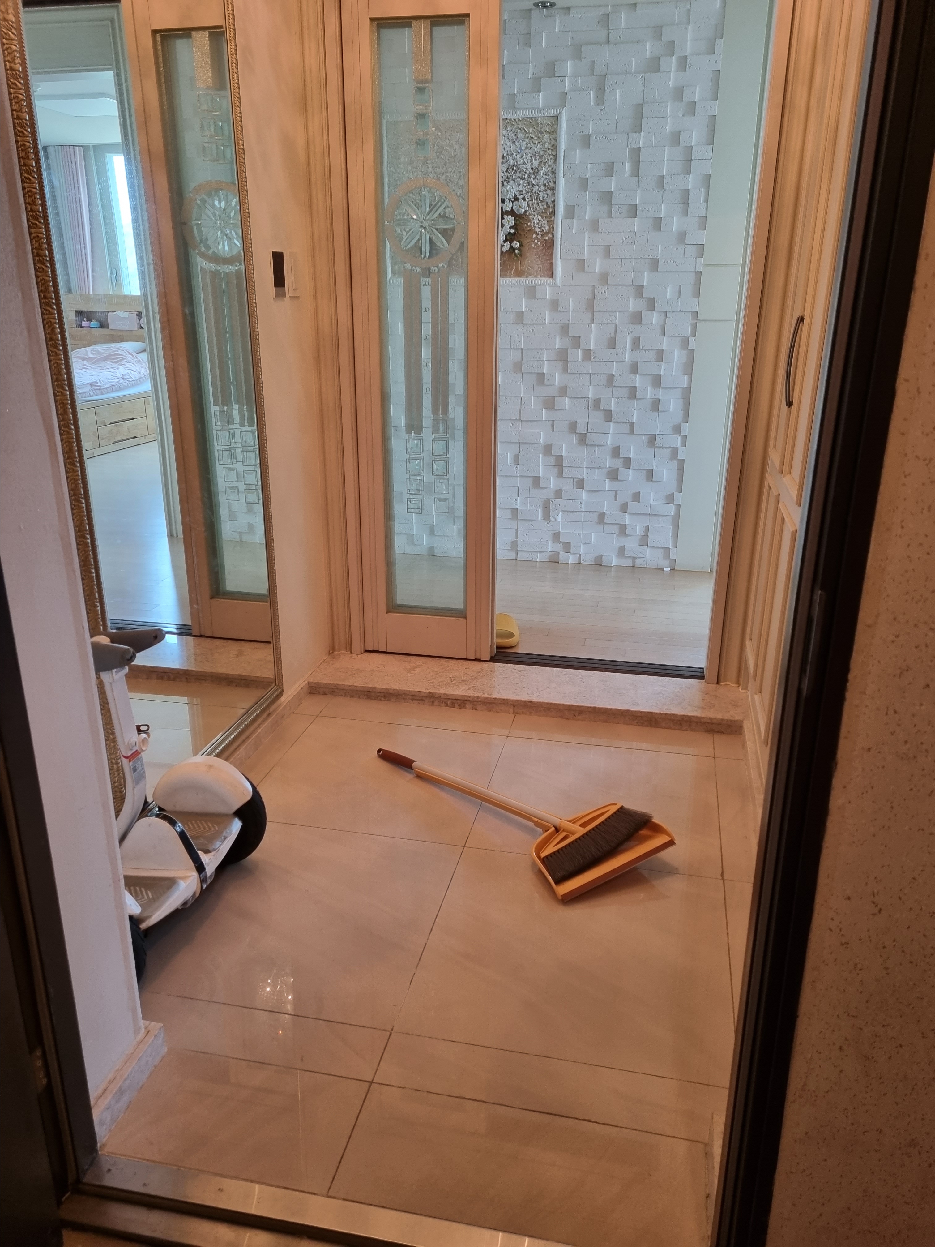 현관청소를 하고 집으로 들어옵니다