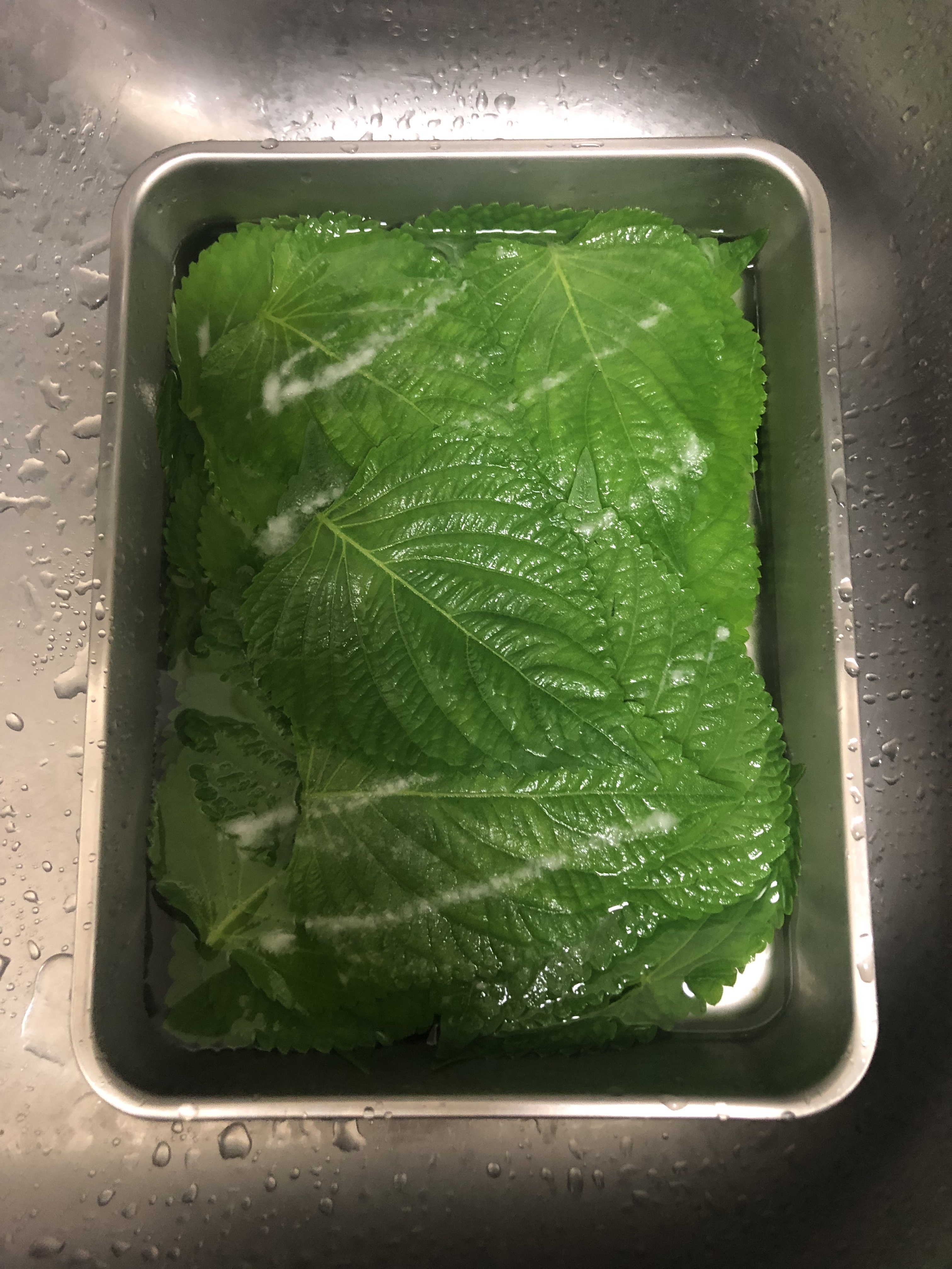 깻잎을 베이킹소다 물에 담가놓고 깨끗하게 씻어주고