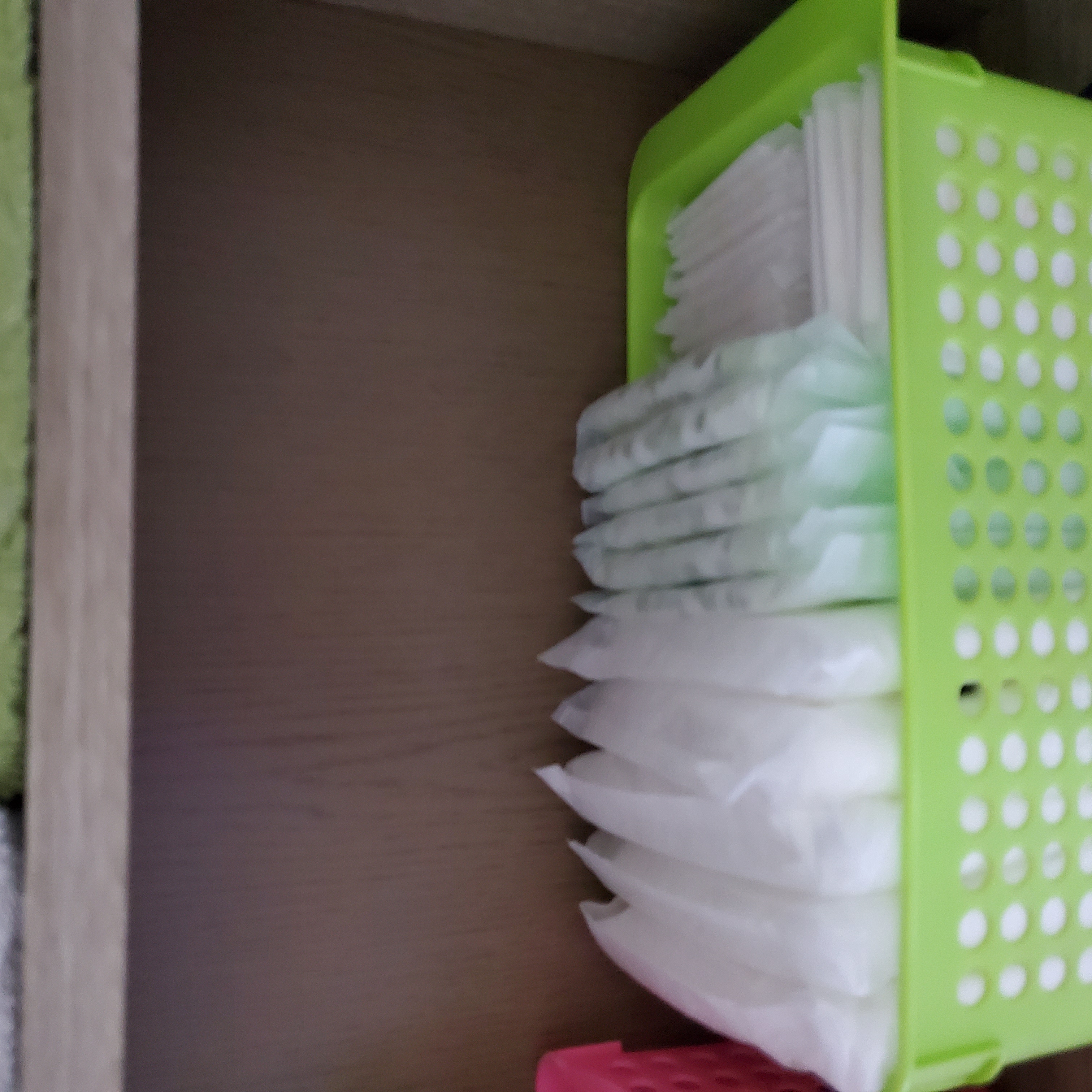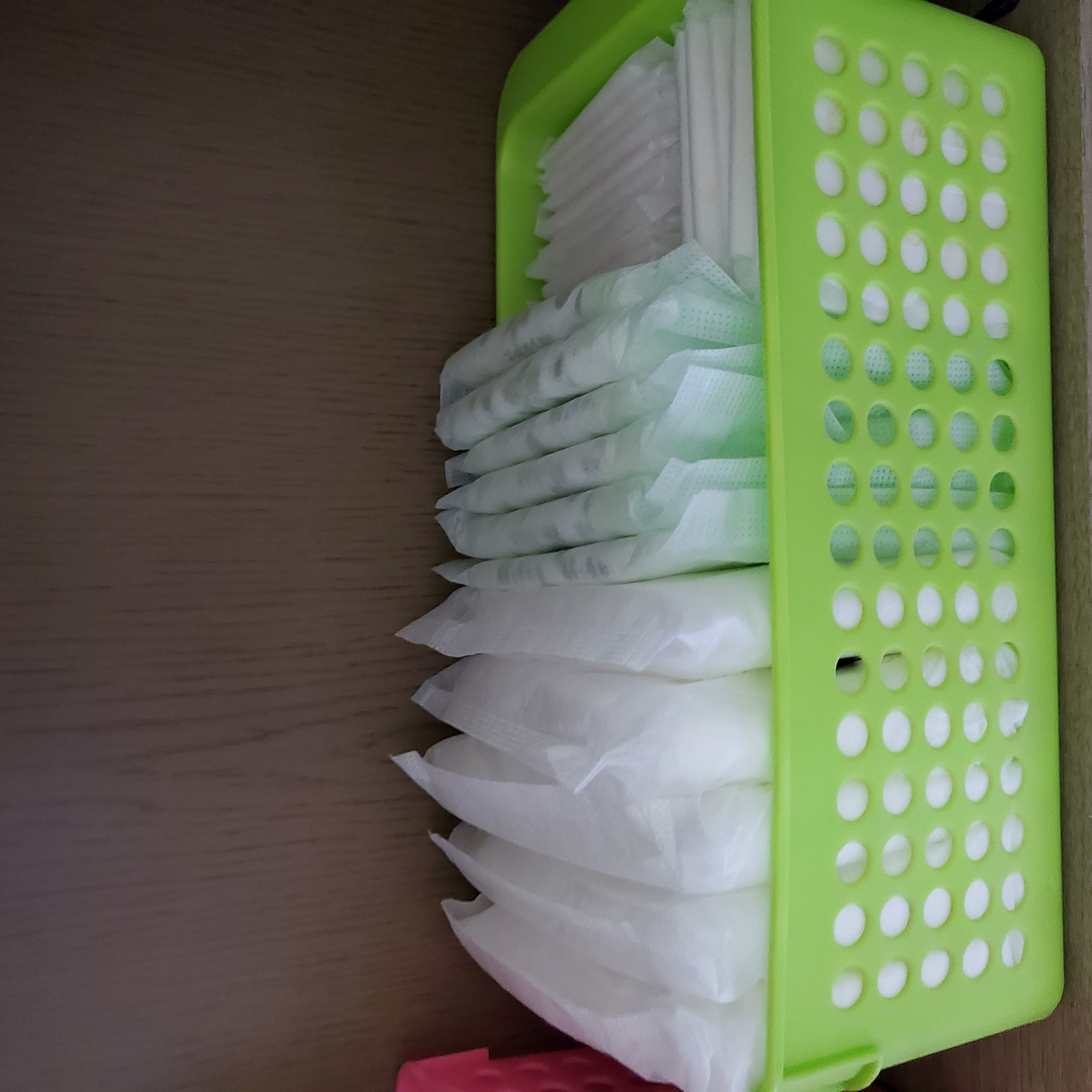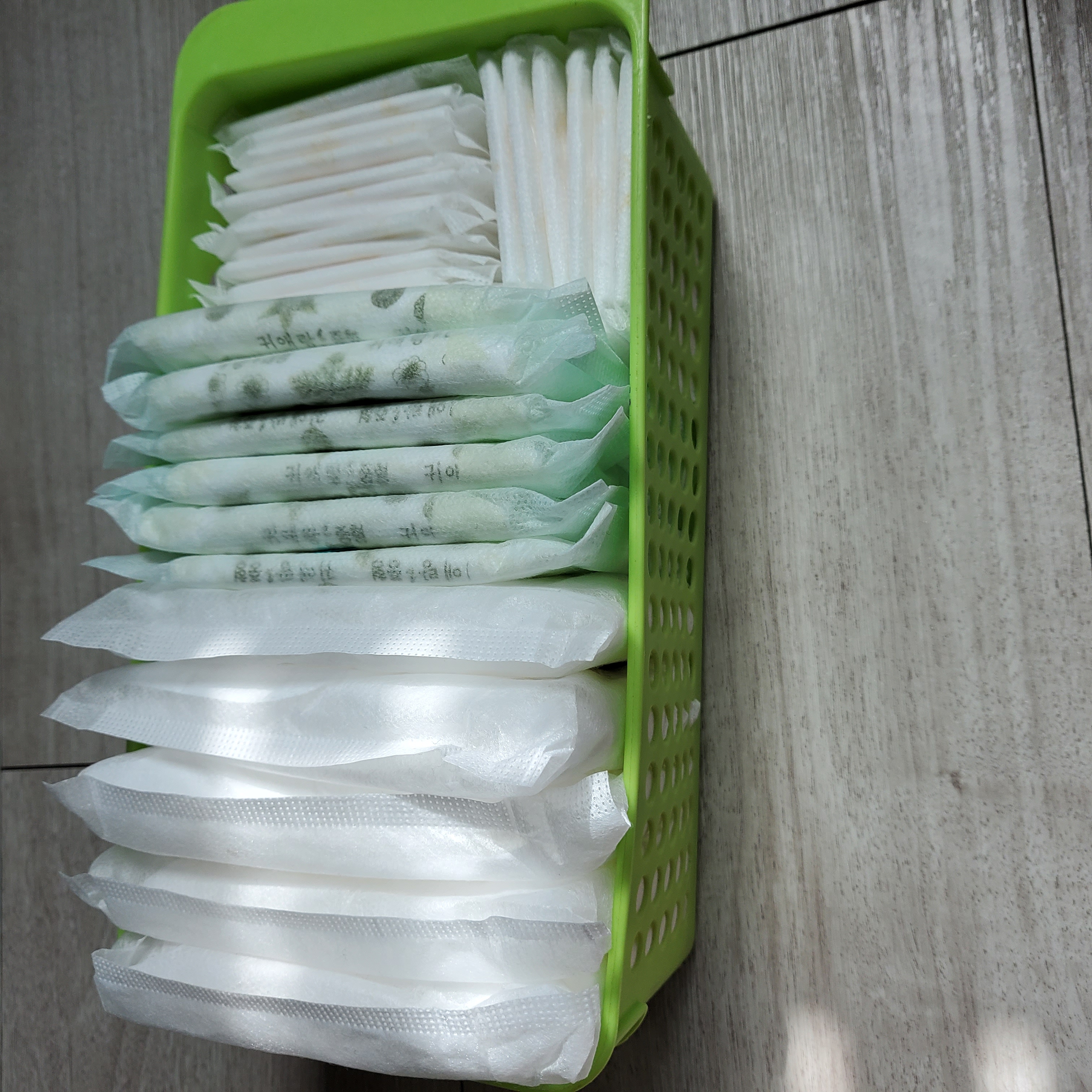 않쓰는 바구니들 겹쳐놓고 안버리고 모아뒀는데 화장실 수납함 정리하면서 위생용품 정리하니 사이즈도 딱이고 깔끔해서 좋더라구요~~