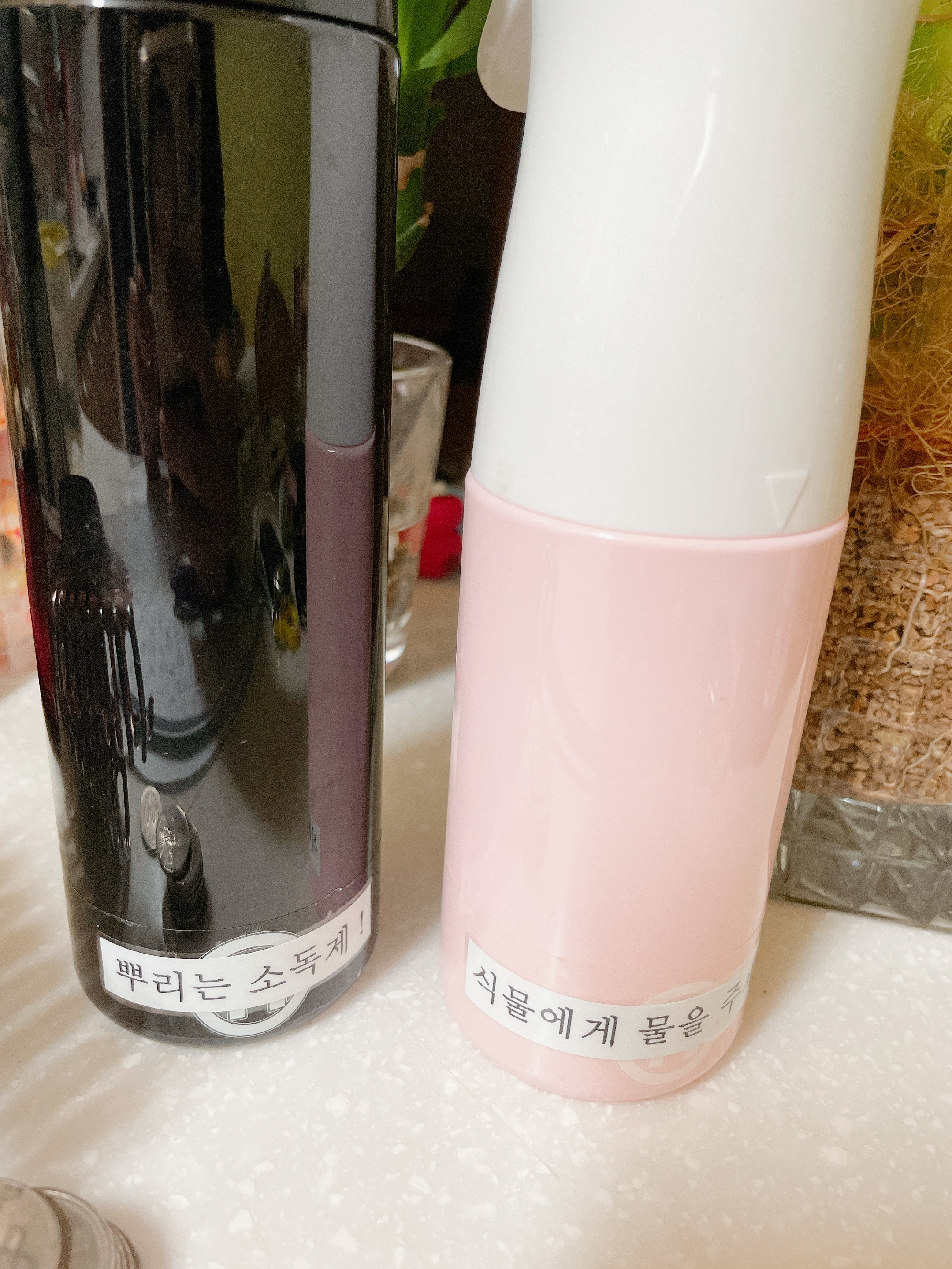 아이들이 직접 식물에 물을 주고 소독도 할 수 있도록 라벨링 했어용