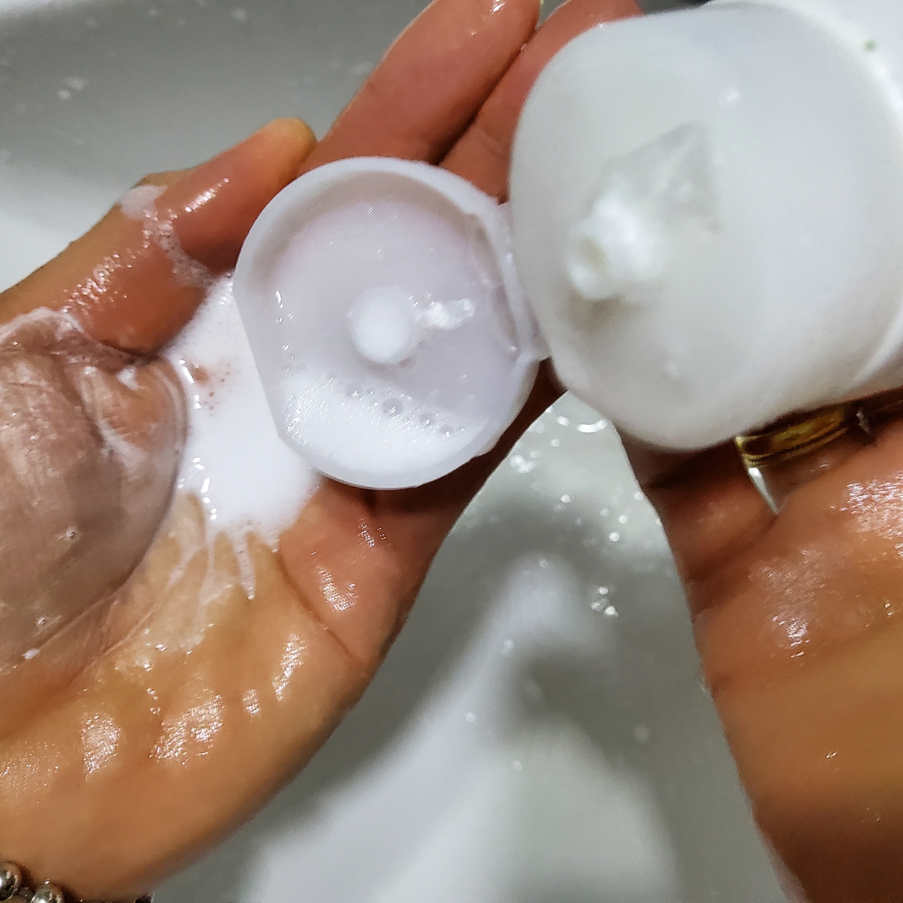 다써가는 폼클렌징 않 나오길래 물 조금 넣고 흔들어서 알뜰살뜰하게 다 사용해요~~