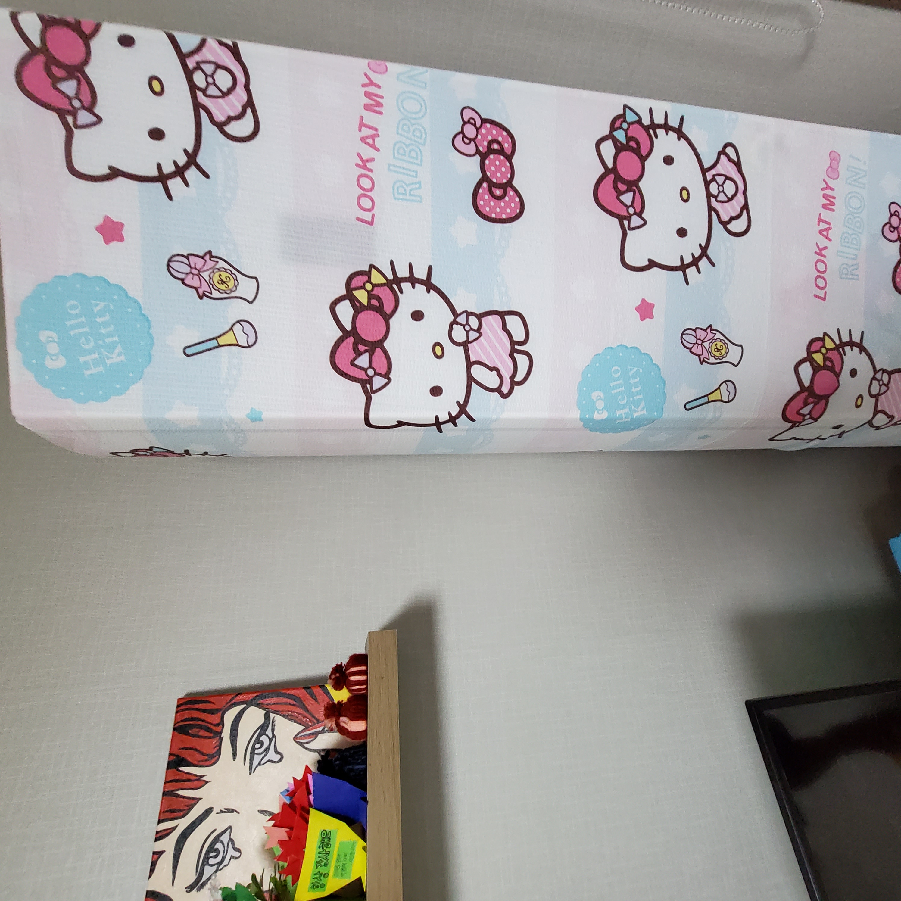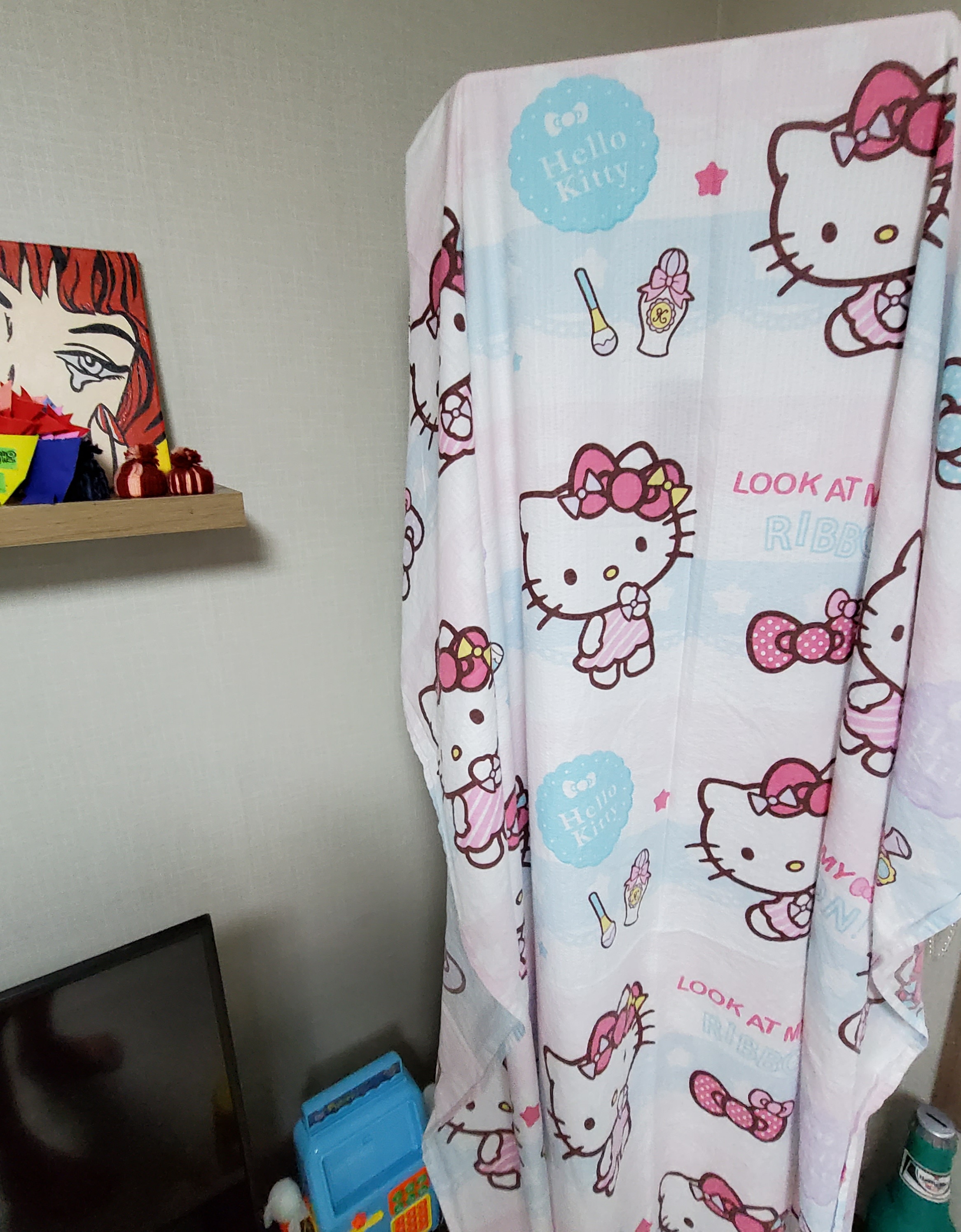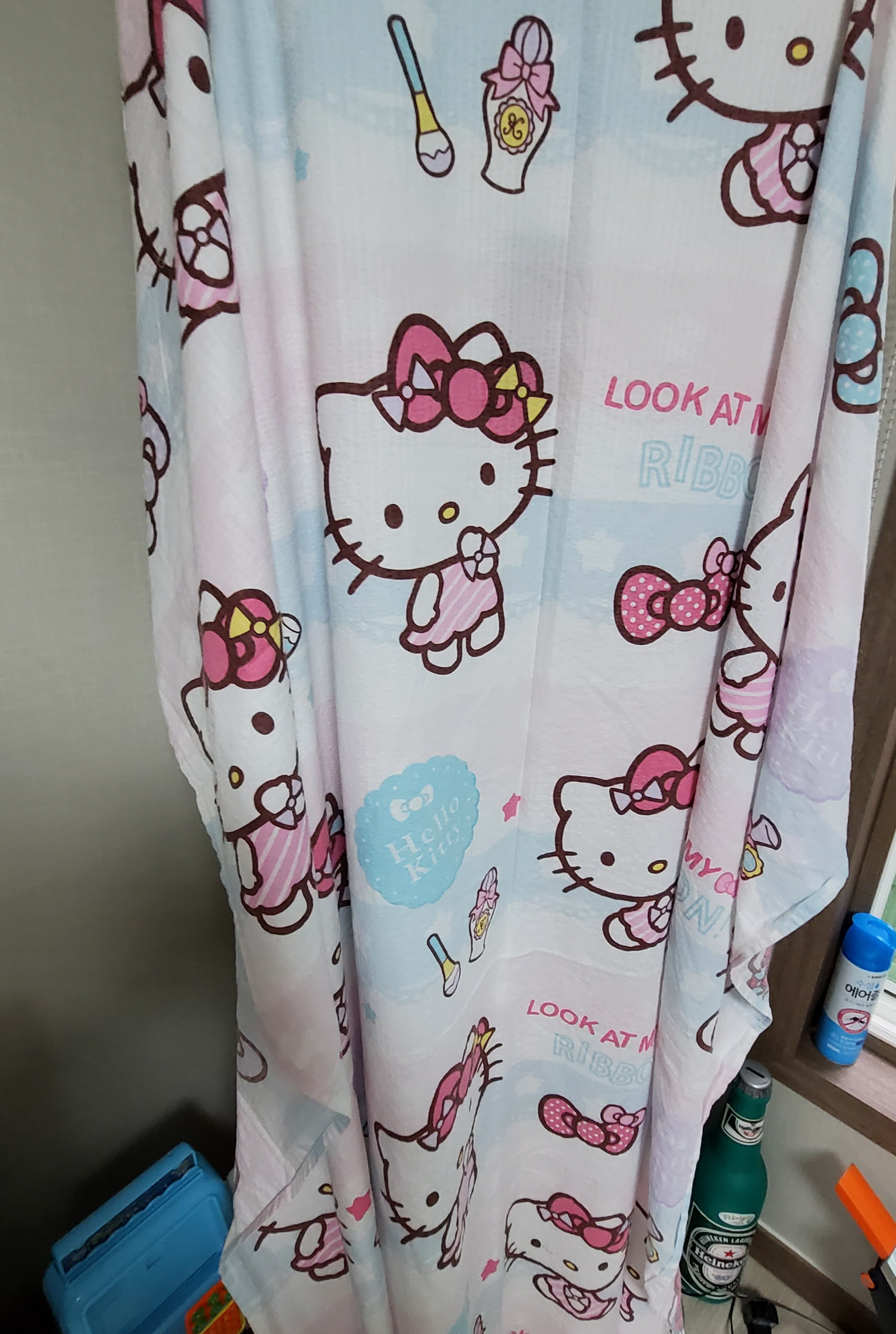여름이 가고 가을이 올때쯤 항상 안쓰는 키티 이불로 에어컨 커버처럼 씌워놓으면 커버같이 감쪽하고 깔끔해서 아직까진 에어컨 커버없이 키티여름 이불로 대체하고 있어요~~^^