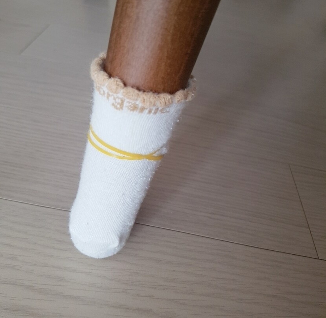 양말씌우고 고무줄로 고정하니 의자 넣었다 뺄때 소리가 덜나고 좋아요~!