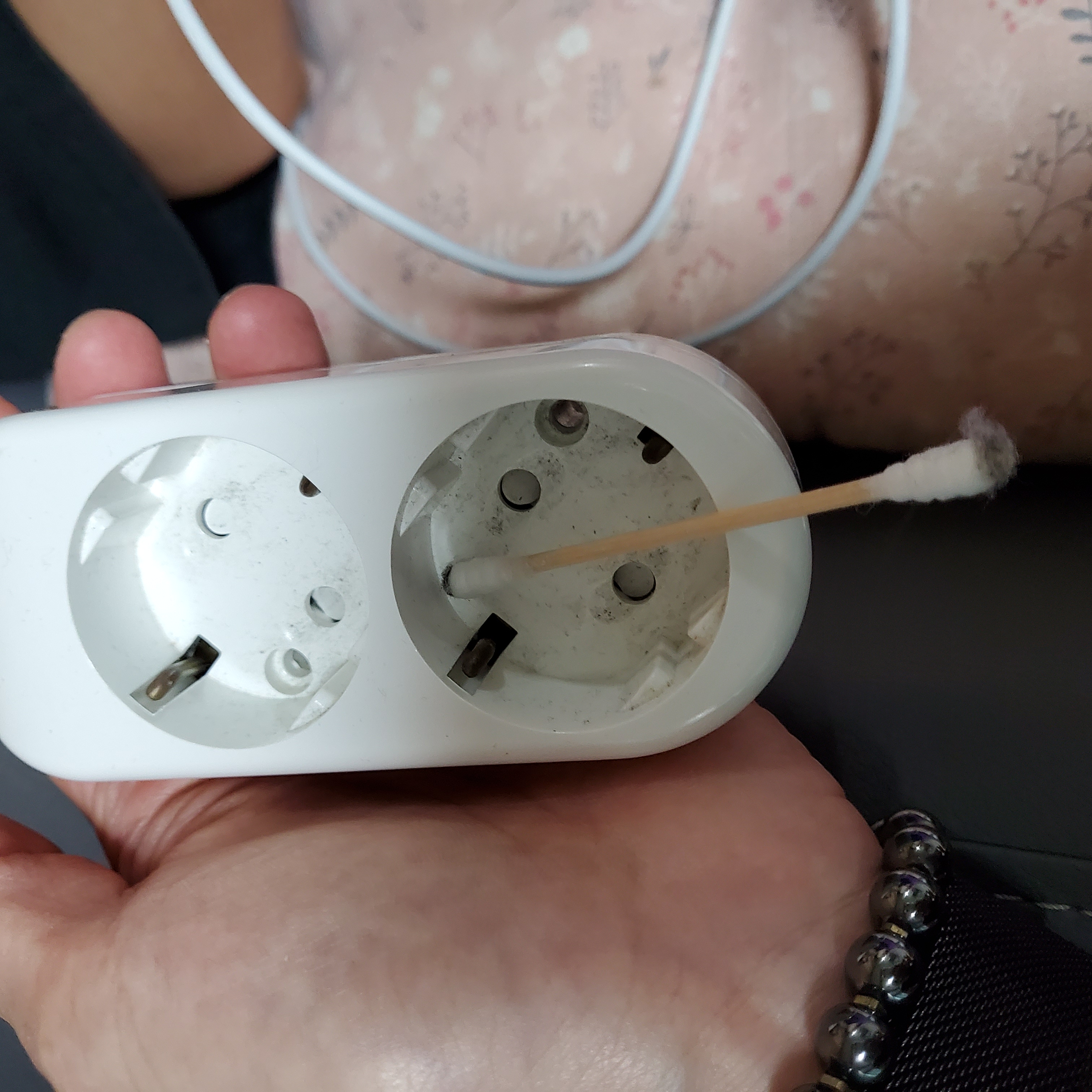 연장선 사용 안할때는 코드 뽑아놓기는 기본인데 보다보니 먼지가 신경 쓰여 면봉에 아세톤 살짝 묻혀 묵은 먼지 닦아서 아용해봐요~
