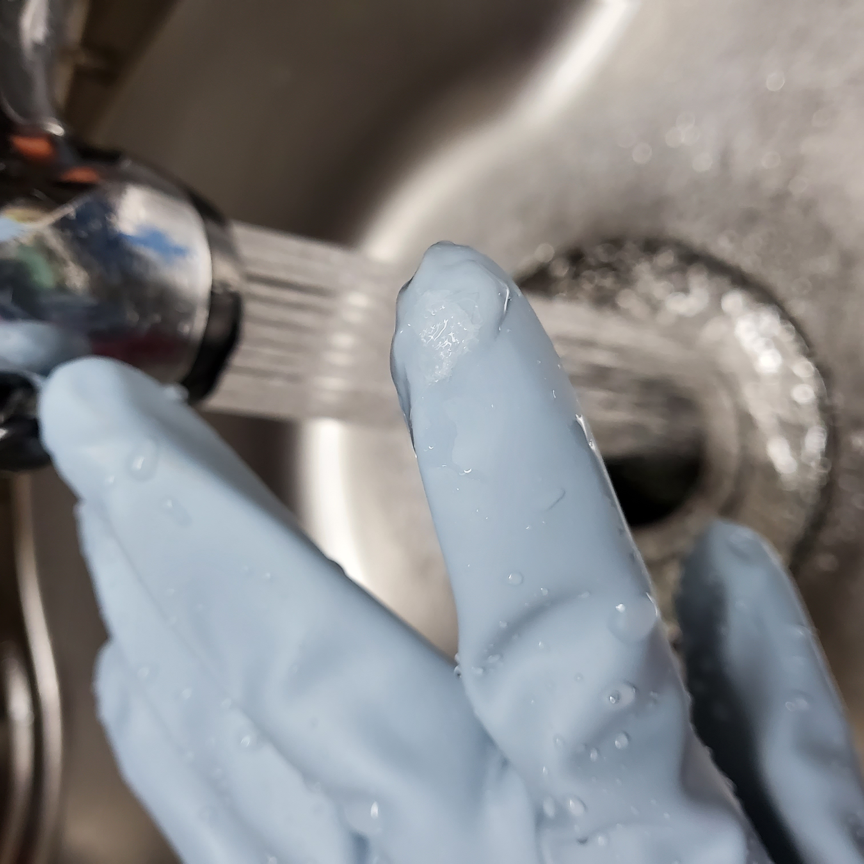 고무장갑 구멍나서 장보고 오는길에 사서 사자마자 설거지하다 부주의로 왼쪽 검지 손가락부위 뚫리게 됐는데 새거라 또 좋아하는 고무장갑이라 아까워서 강력접착제 이용해 구멍 난 자리 그대로 붙여줬더니 딱 달라붙어 다시 쓸수 있게 됐어요