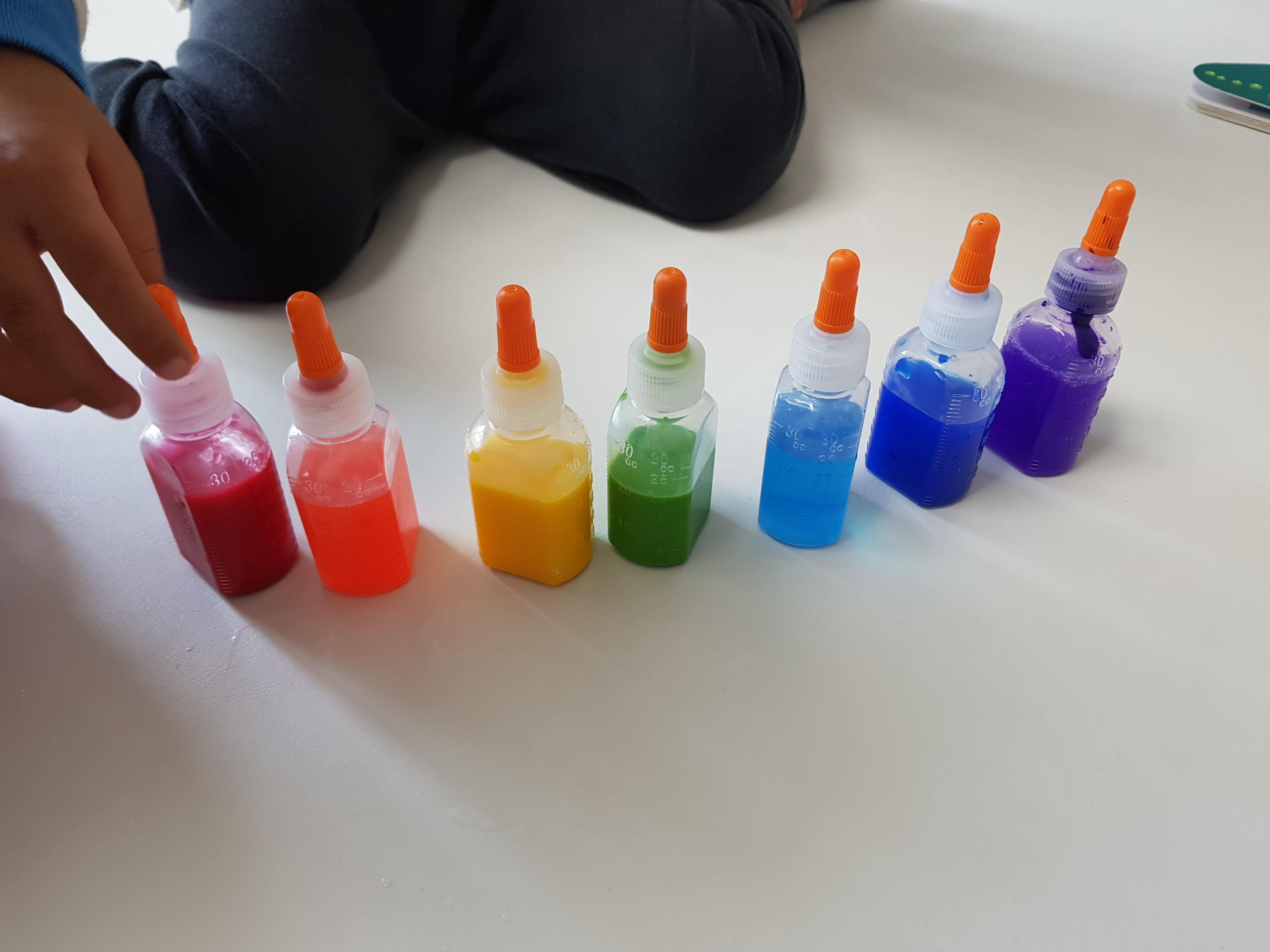 아이들이 흔들어주면 숨겨진 색이 나오지요.
