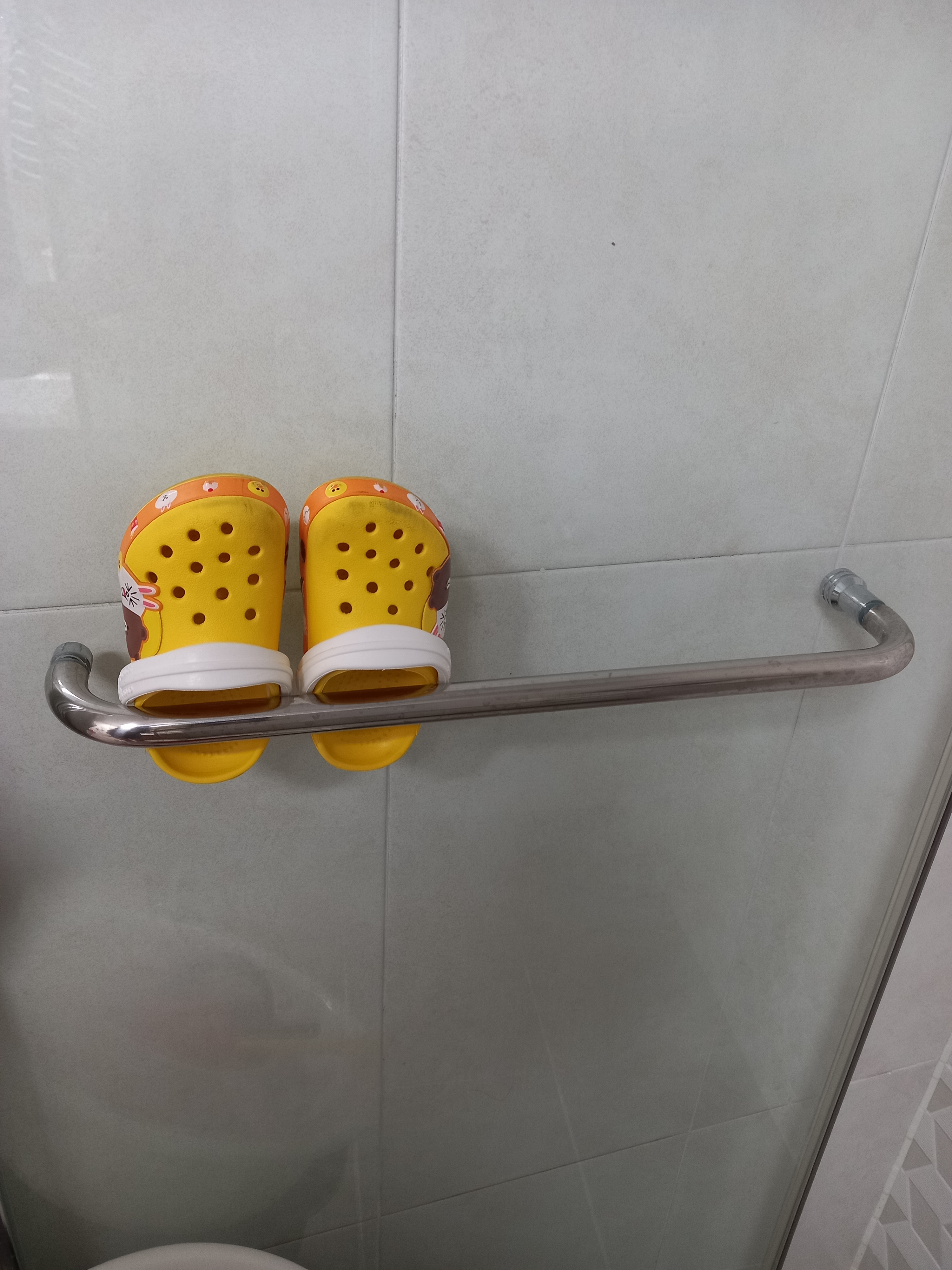 샤워부스에 걸어서 두니 딱 맞더라구요 청소할때나 씻고 나서 요기에 걸어두면 물 잘빠져요~!
