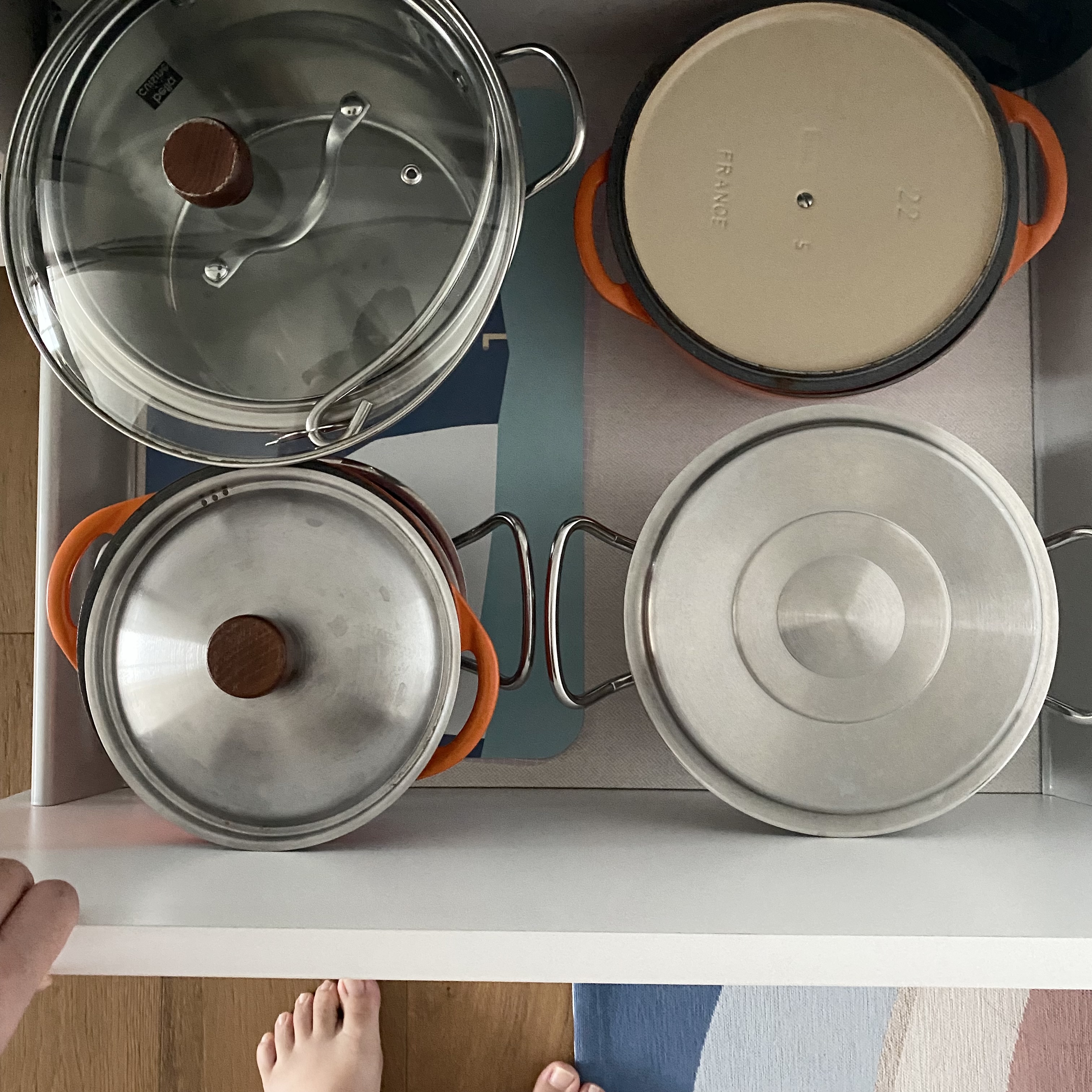잘쓰는 냄비도 한곳에 모아 수납했어요.