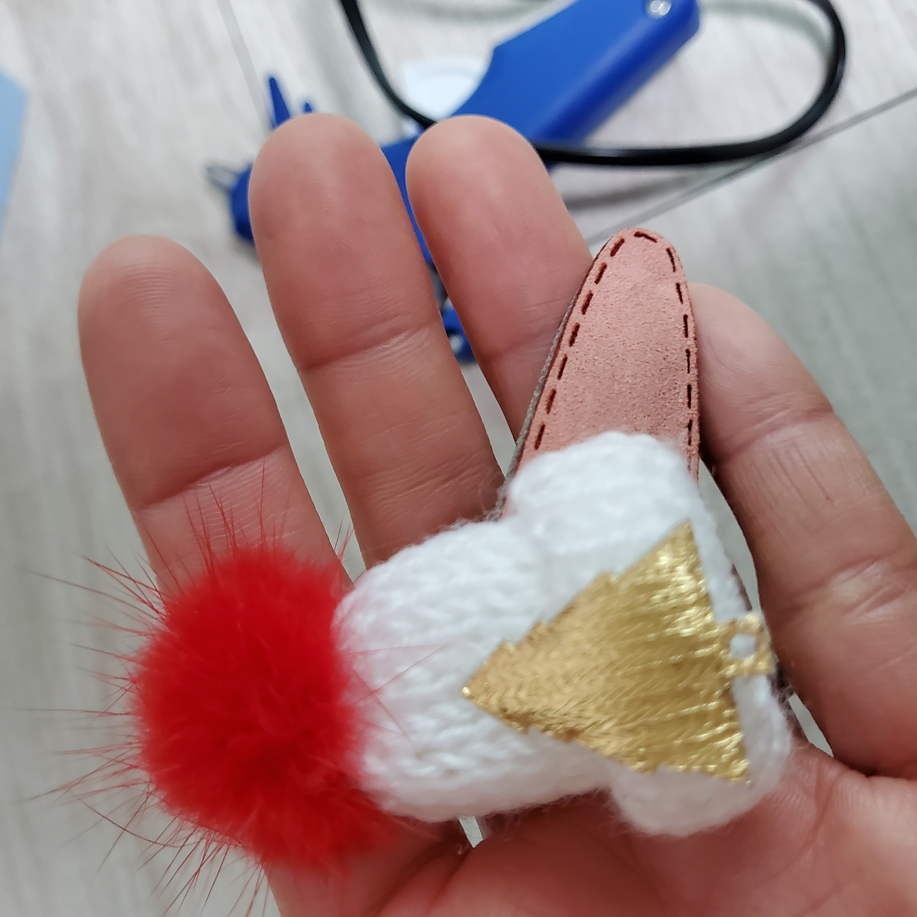 인형에 붙어 있던 작은 꼬깔모자가 떨어져있어 예전부터 남는 악세사리로 머리핀 만드는걸 좋아 했어서 그런지 똑딱핀에 글루건으로 뚝딱 머리핀 만들었더니 나름 예쁘더라구용