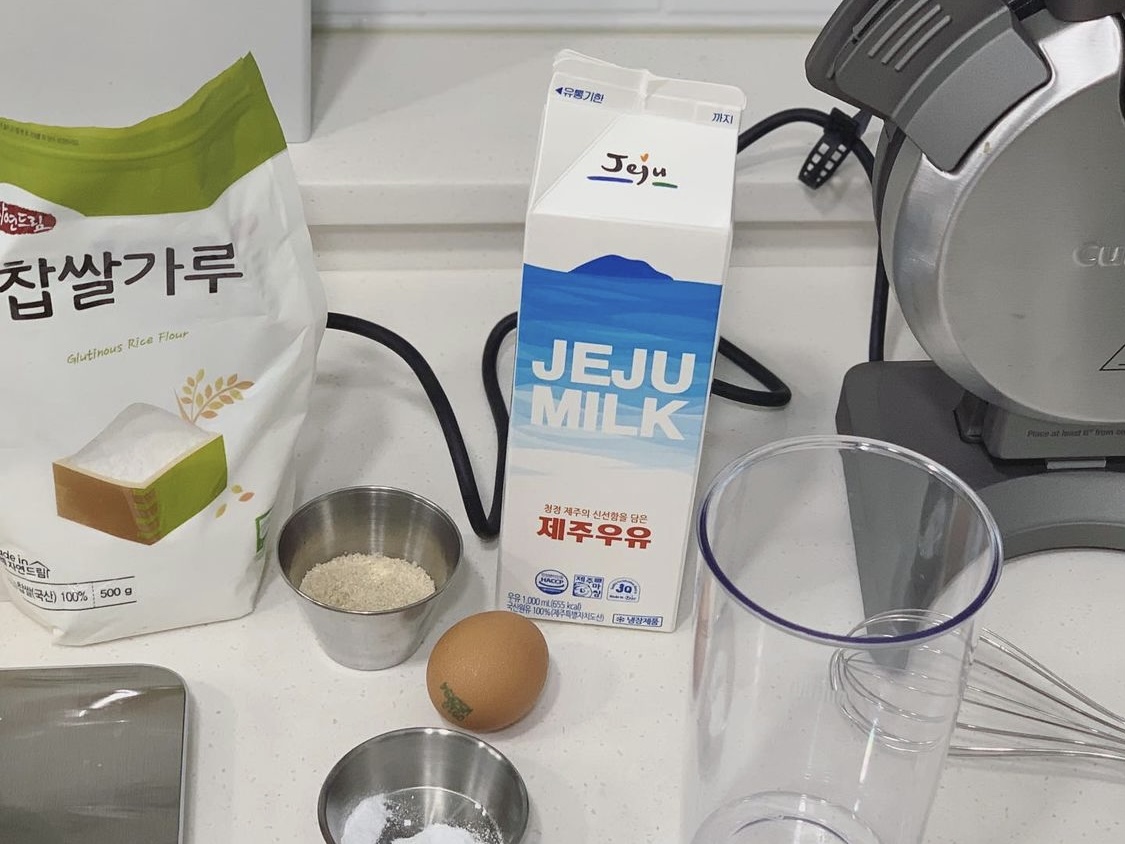 찹쌀가루랑 우유, 계란, 소금으로 반죽 만들 수 있습니다
