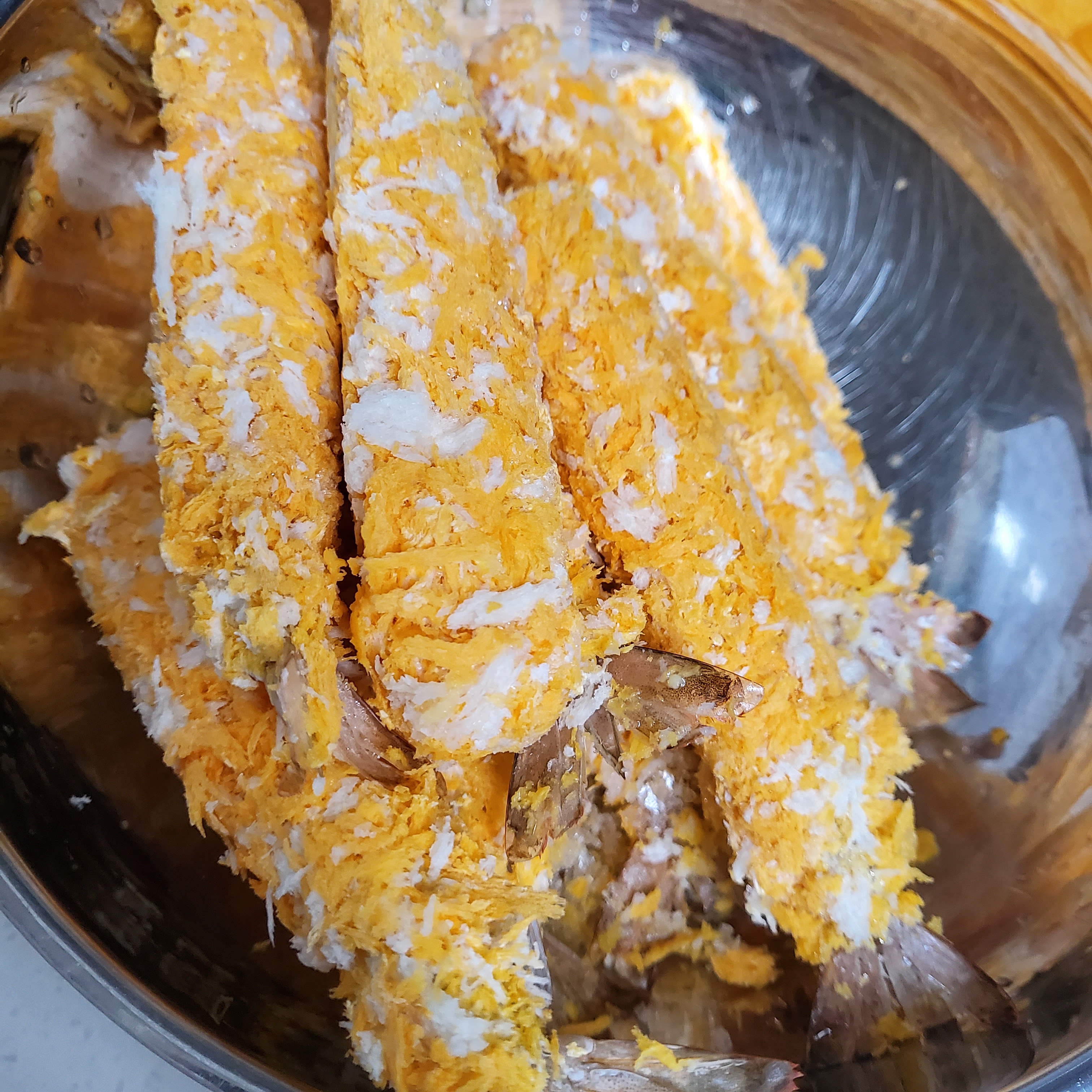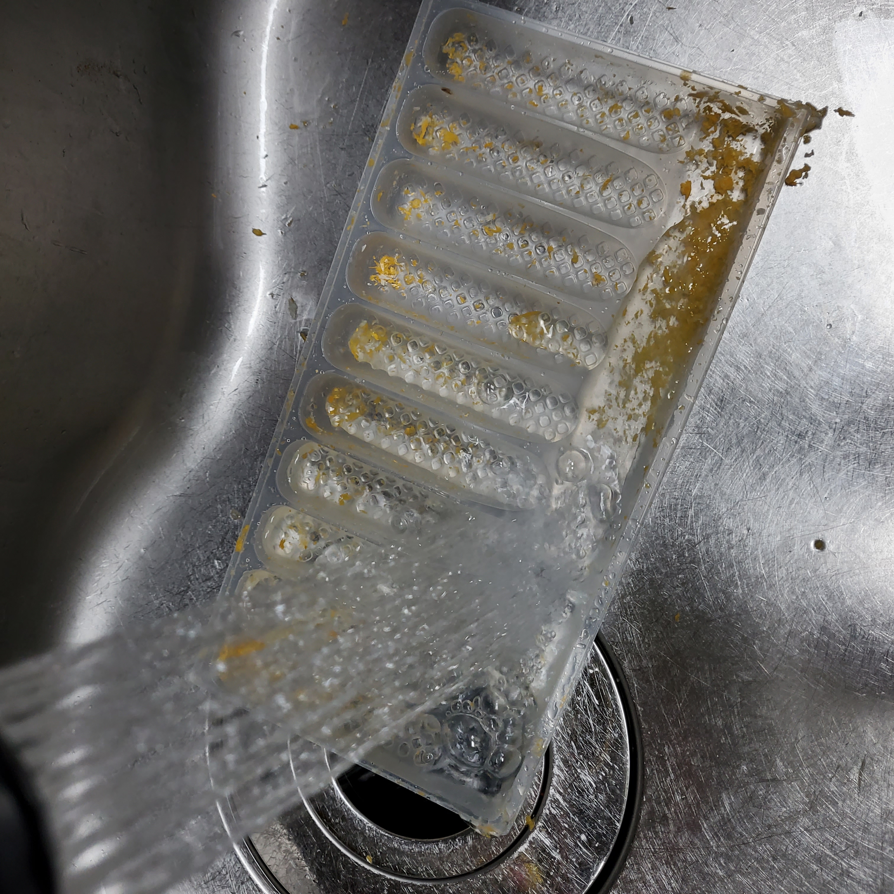 새우튀김 하고 튀김옷이 지저분하게 붙어 있는 플라스틱 용기와 비닐 깨끗히 씻어서 분리수거 합니다