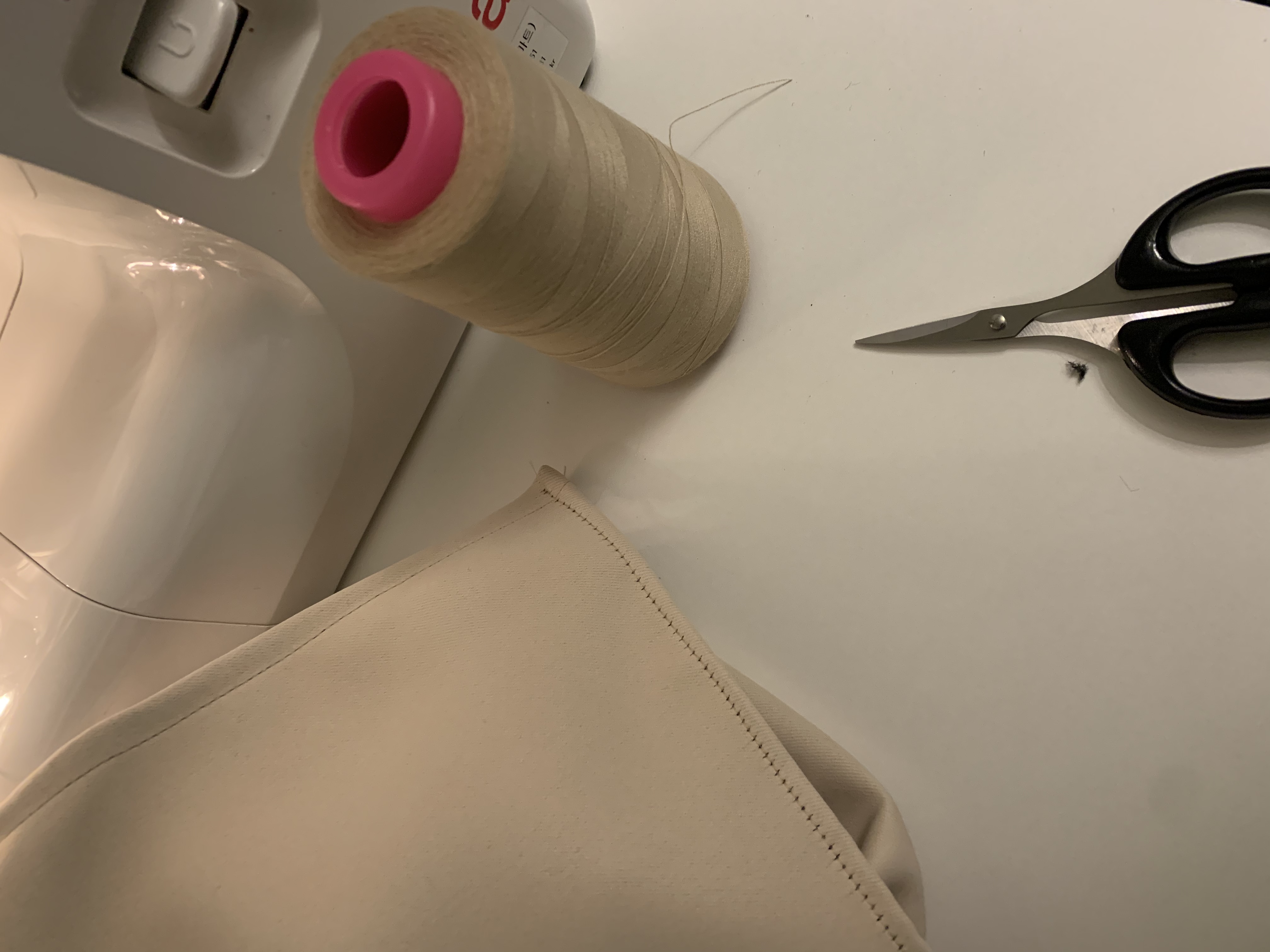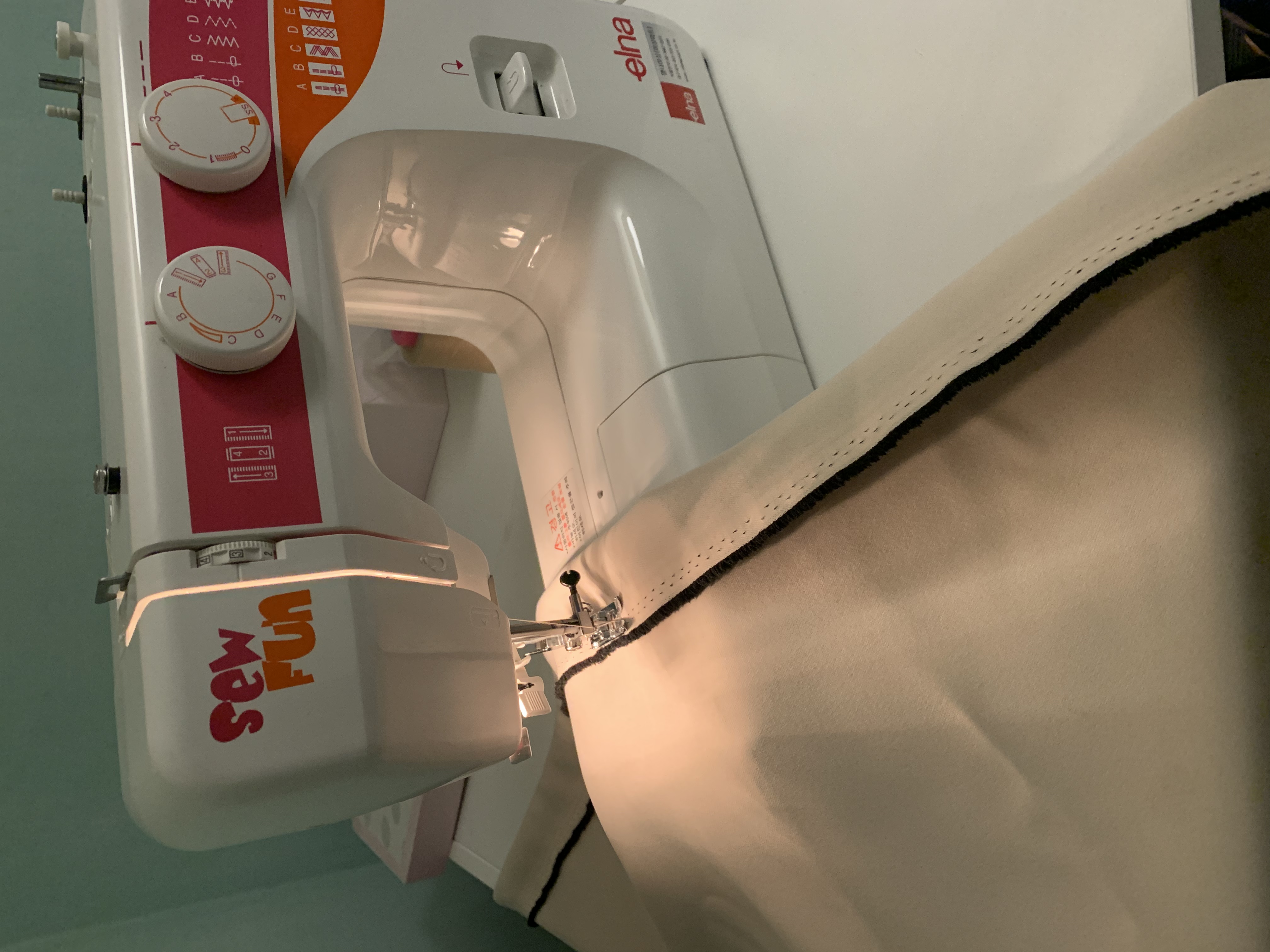 길이가 짧아서 짧은 창문에 달아줄 커튼을 만들고 있어요.